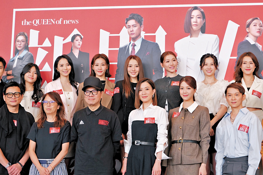 (香港文匯報記者 阿祖)無綫台慶劇《新聞女王2》今晚在翡翠台開播,劇集展覽揭幕禮則於昨日舉行,展覽展出演員劇照、新聞主播台以及採訪車。佘詩曼(阿佘)、馬國明、譚俊彥、王敏奕、陳曉華及郭柏姸等出席,大批粉絲到場支持偶像,其中阿佘的粉絲更拉起多幅「《新聞女王2》一路長虹」橫額以作支持。