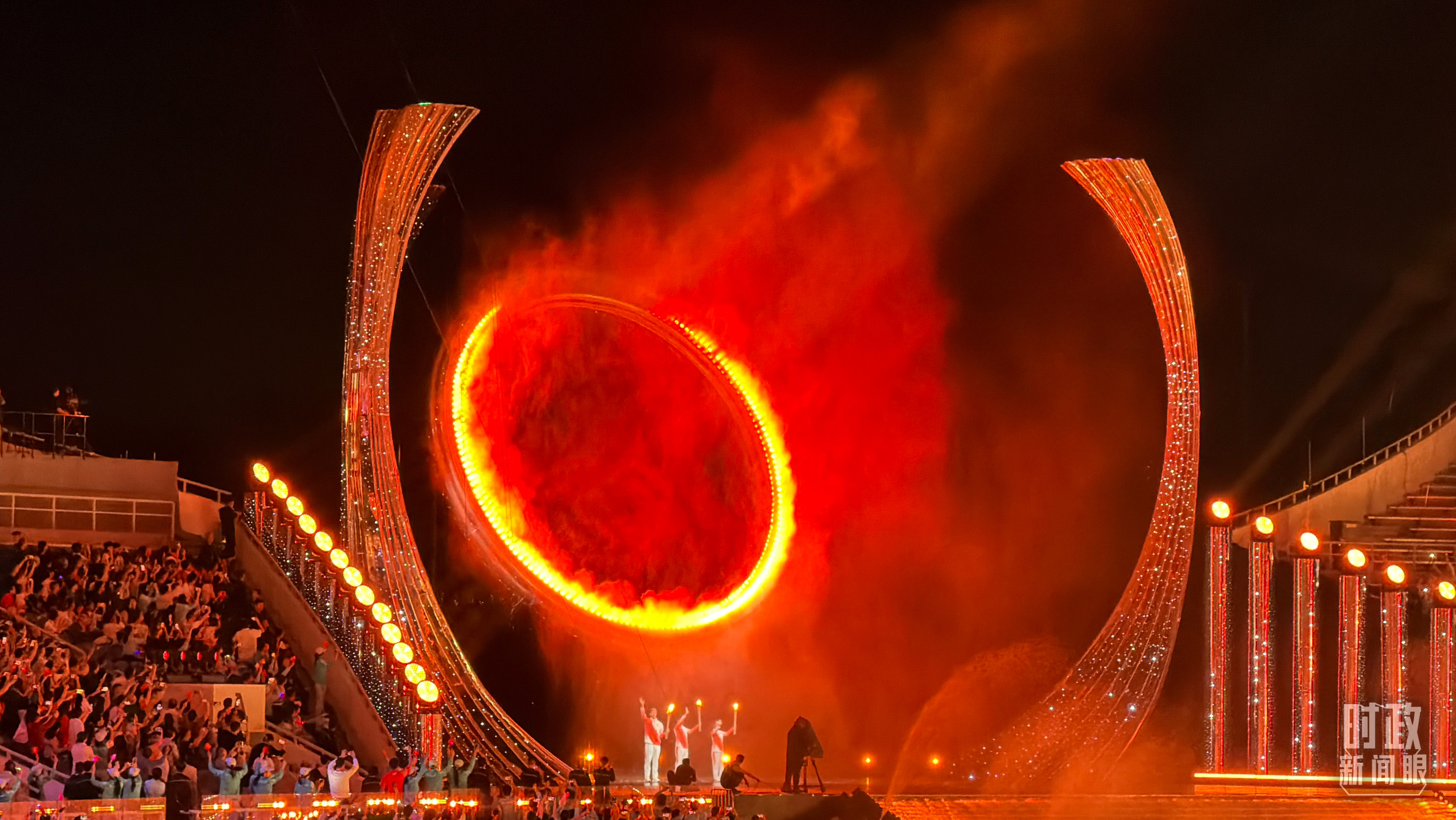 開幕式巧妙融入香港維多利亞港、澳門大三巴、廣州塔等城市地標元素,實現粵港澳三地同步升國旗儀式。