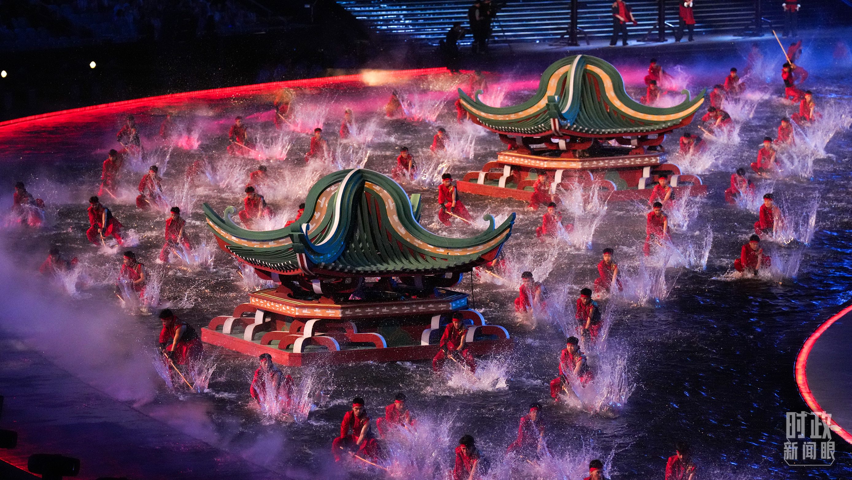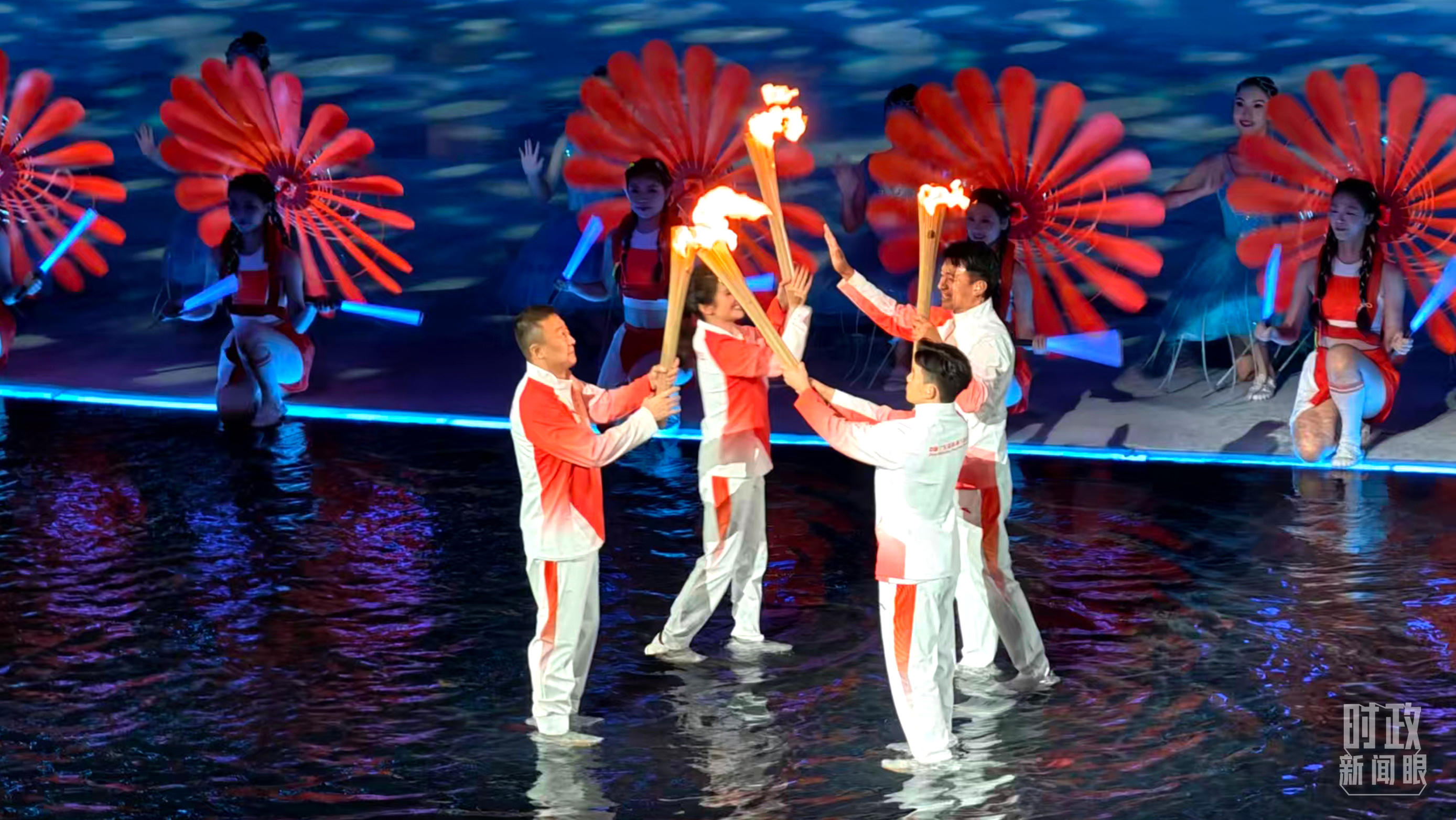 廣東奧體中心內,一幅運用人工智能技術、展現嶺南瑰麗風光的「長卷」徐徐鋪展。開幕式包括入場儀式、奏唱國歌、參賽運動員等代表宣誓、文體展演、主火炬點燃儀式等多個環節。其中,展現粵港澳三地攜手合辦的「同心」「融合」等元素,成為這場開幕式的一大特點。