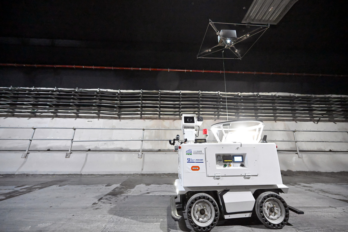 科技賦能,驅動進步。發展局積極在工務工程應用建築機械人,轄下土木工程拓展署便在T2主幹路及茶果嶺隧道工程項目,利用地空協同隧道自動檢測系統執行隧道內部結構缺損檢測工作,大幅提高效率,檢測成本更銳減。