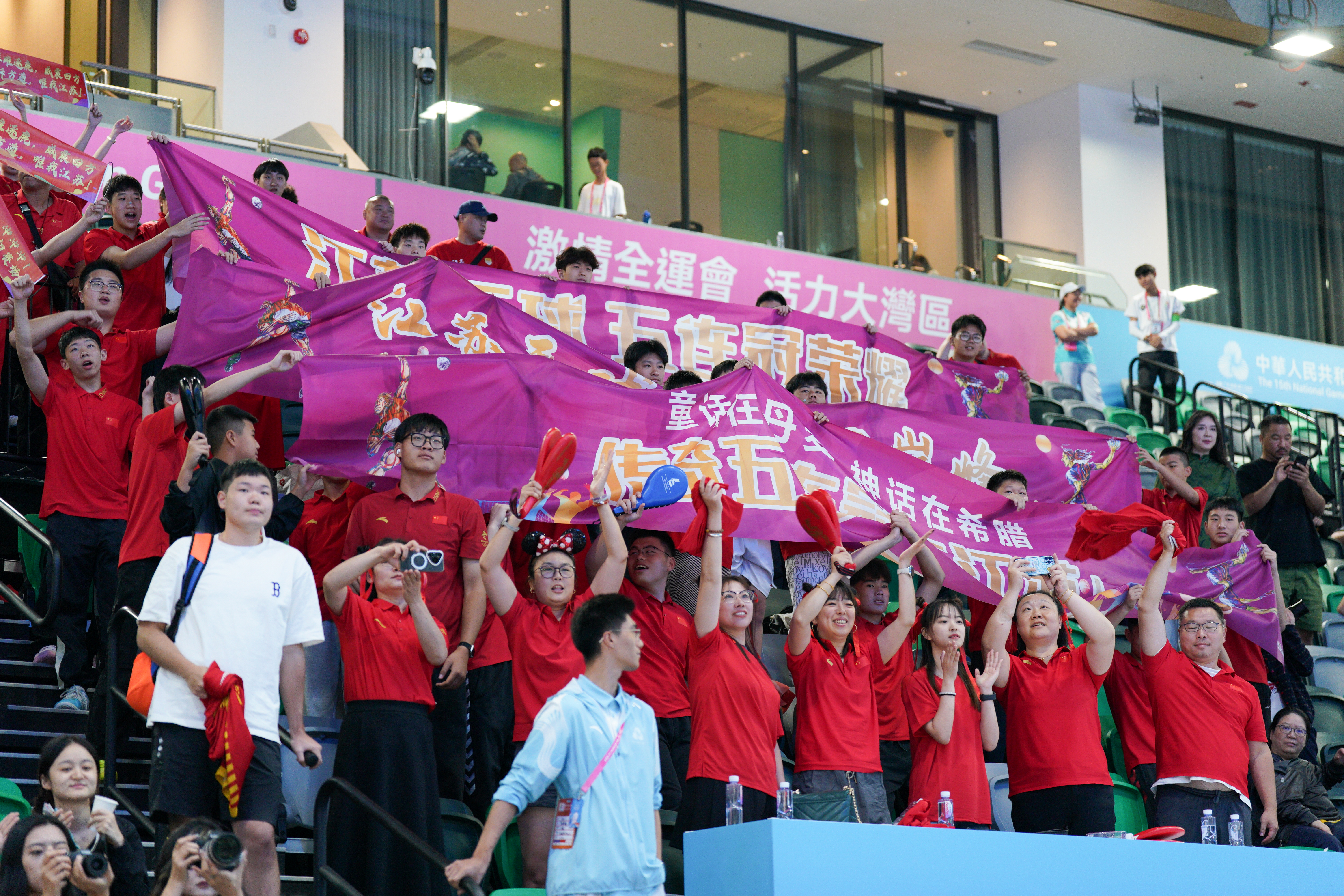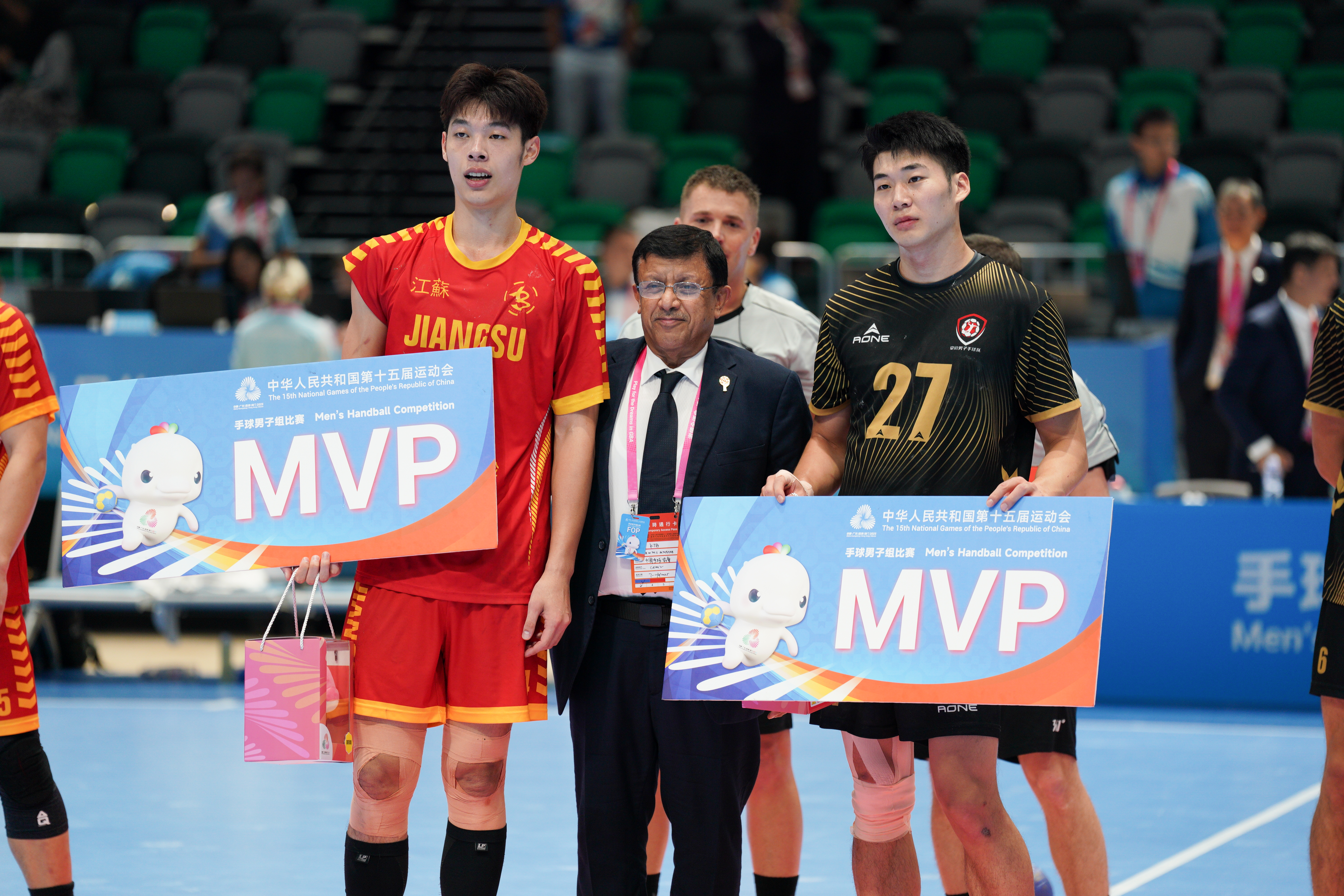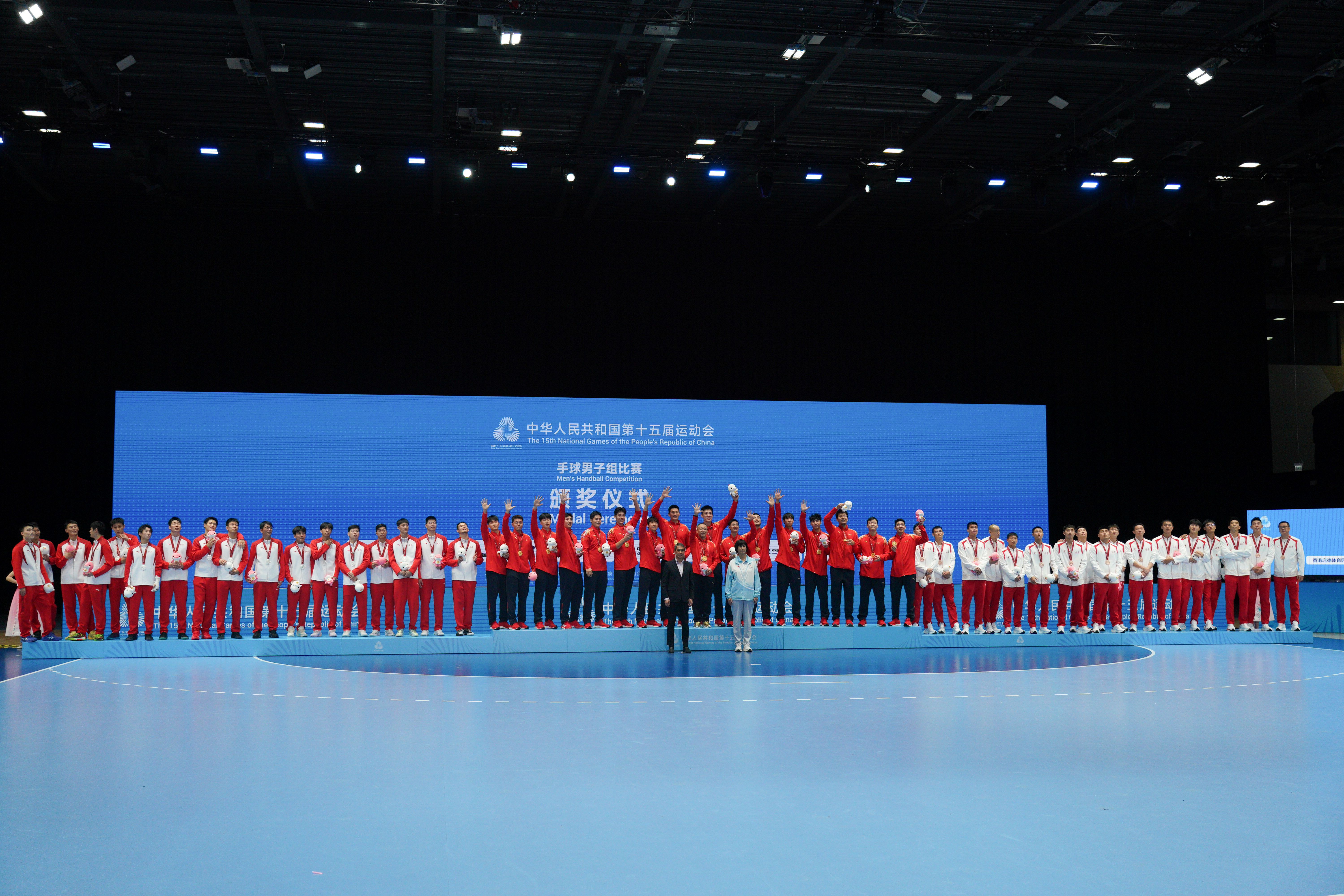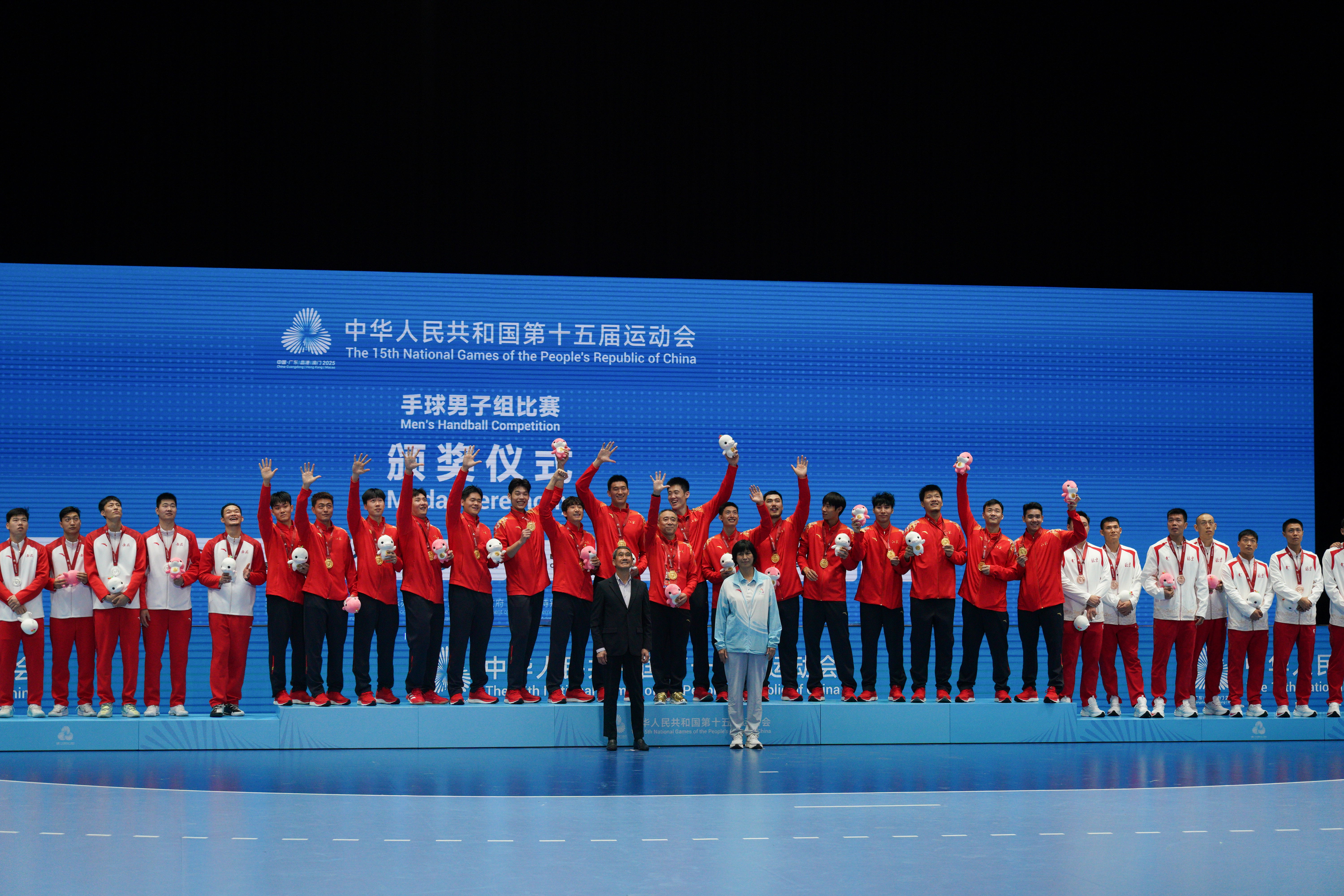 江蘇隊、安徽隊與此前在銅牌賽中戰勝港隊的北京隊,共同登上頒獎台。三支隊伍分別收穫金、銀、銅牌,並獲得了全運會吉祥物「喜洋洋」和「樂融融」。