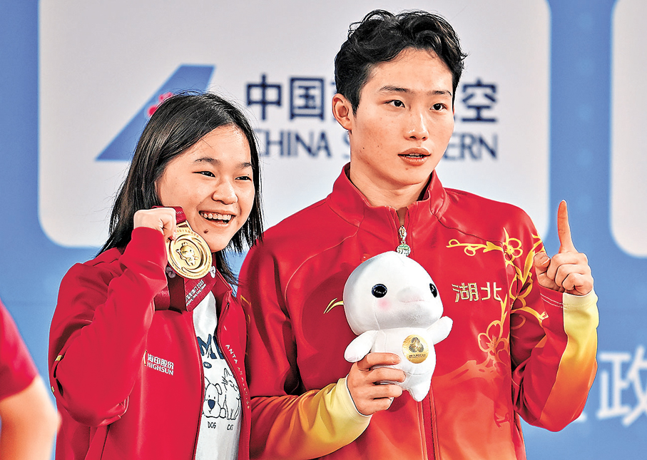 (香港文匯報記者 敖敏輝 廣州報道)昨日下午在廣州舉行的十五運會跳水男子3米板決賽中,代表湖北出戰的奧運冠軍王宗源以549.85分的成績強勢奪得金牌,這是他繼男子1米板項目後,在本屆全運會上獲得的第二面金牌。王宗源的湖北隊隊友鄭九源摘銀,廣東隊33歲的老將何超獲得銅牌。從預賽到決賽,王宗源一路都是以絕對優勢領先,多次跳出100分以上的成績,決賽最後一輪甚至跳出106.40分的超高分。談到狀態出色的原因,王宗源說巴黎奧運會未能奪得單人3米板金牌,自己曾一度消沉,今年經過調整,已經沒有了任何心理負擔,幫助自己狀態回勇。