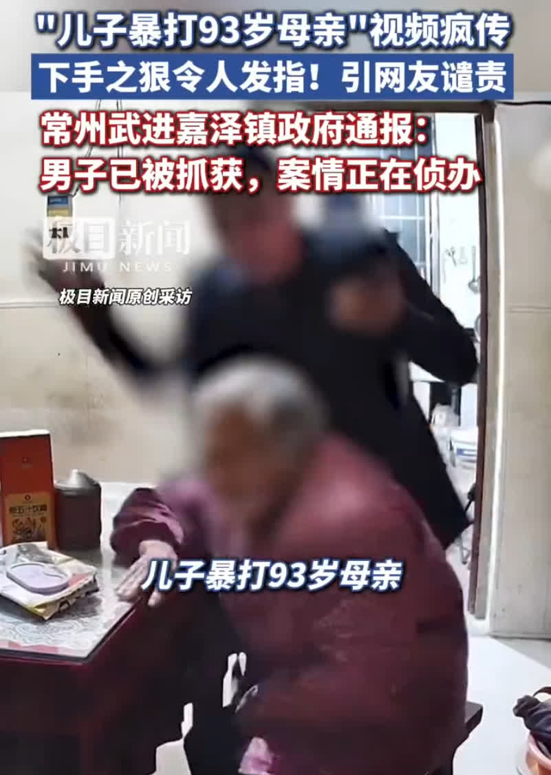 據媒體此前報道,11月10日,一段「兒子毆打93歲母親」的視頻在網上流傳。視頻顯示,一名男子先是對着一名白髮老太太厲聲質問,然後連續扇耳光,老人發出大聲哀號。此後老人跑到廚房,男子跟過去拉住其頭髮,將她摁在到地上下毆打。