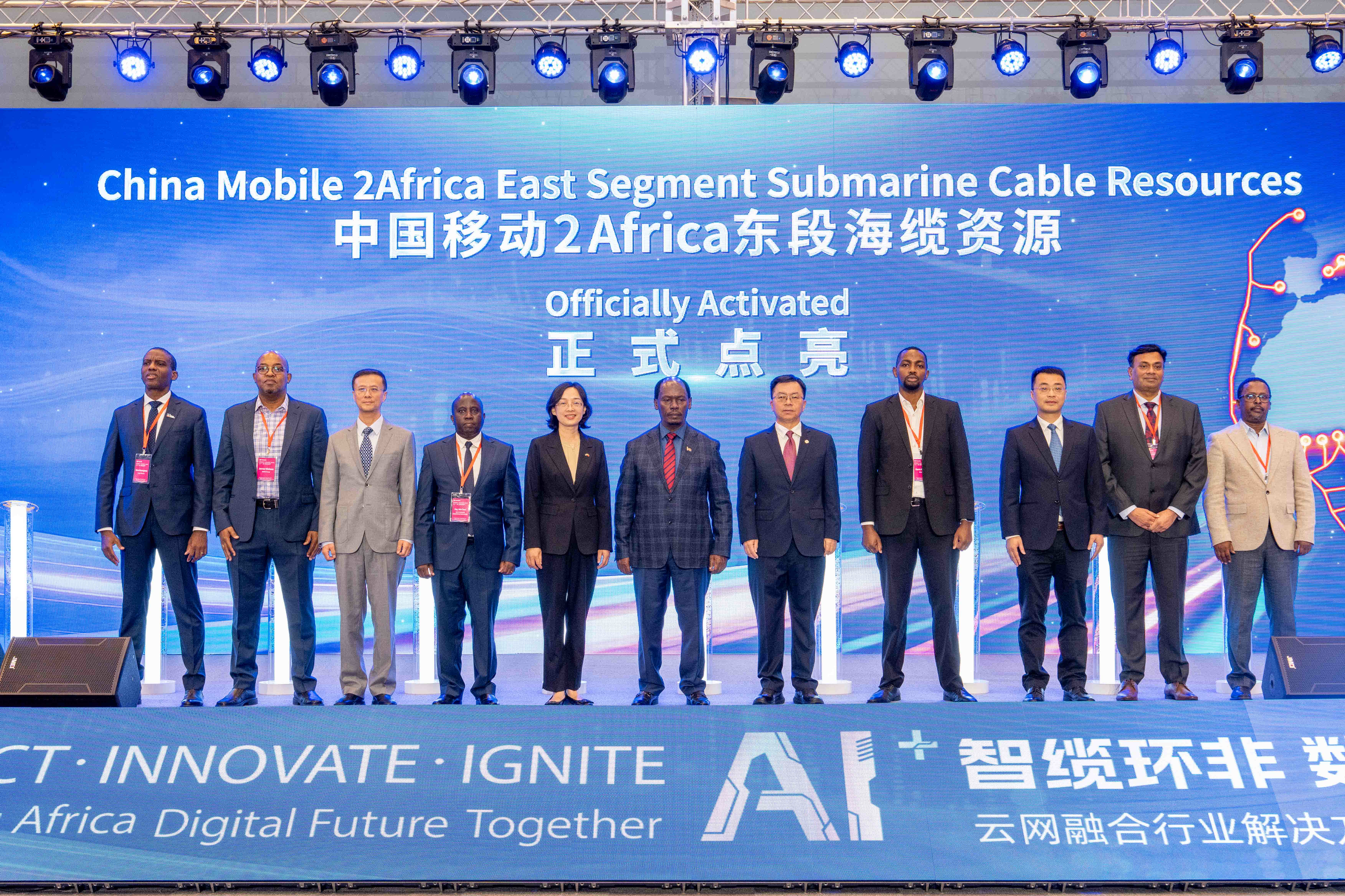 11月7日,中國移動2Africa海纜東段點亮暨AI+雲網融合行業解決方案發布會在肯尼亞首都內羅畢舉辦。會議以「智纜環非・數通未來」為主題,發布最新海纜資源2Africa東段投產(南非-肯尼亞-吉布提段、馬賽-埃及段)和AI+雲網融合行業解決方案,助力中非數字互聯互通進入全新階段,為共建「一帶一路」與「數字絲綢之路」注入強勁動能。中國駐肯尼亞大使郭海燕,肯尼亞政府信息通信與數字經濟部部長威廉·卡博戈·基塔烏,中國移動副總經理李慧鏑出席會議並致辭。