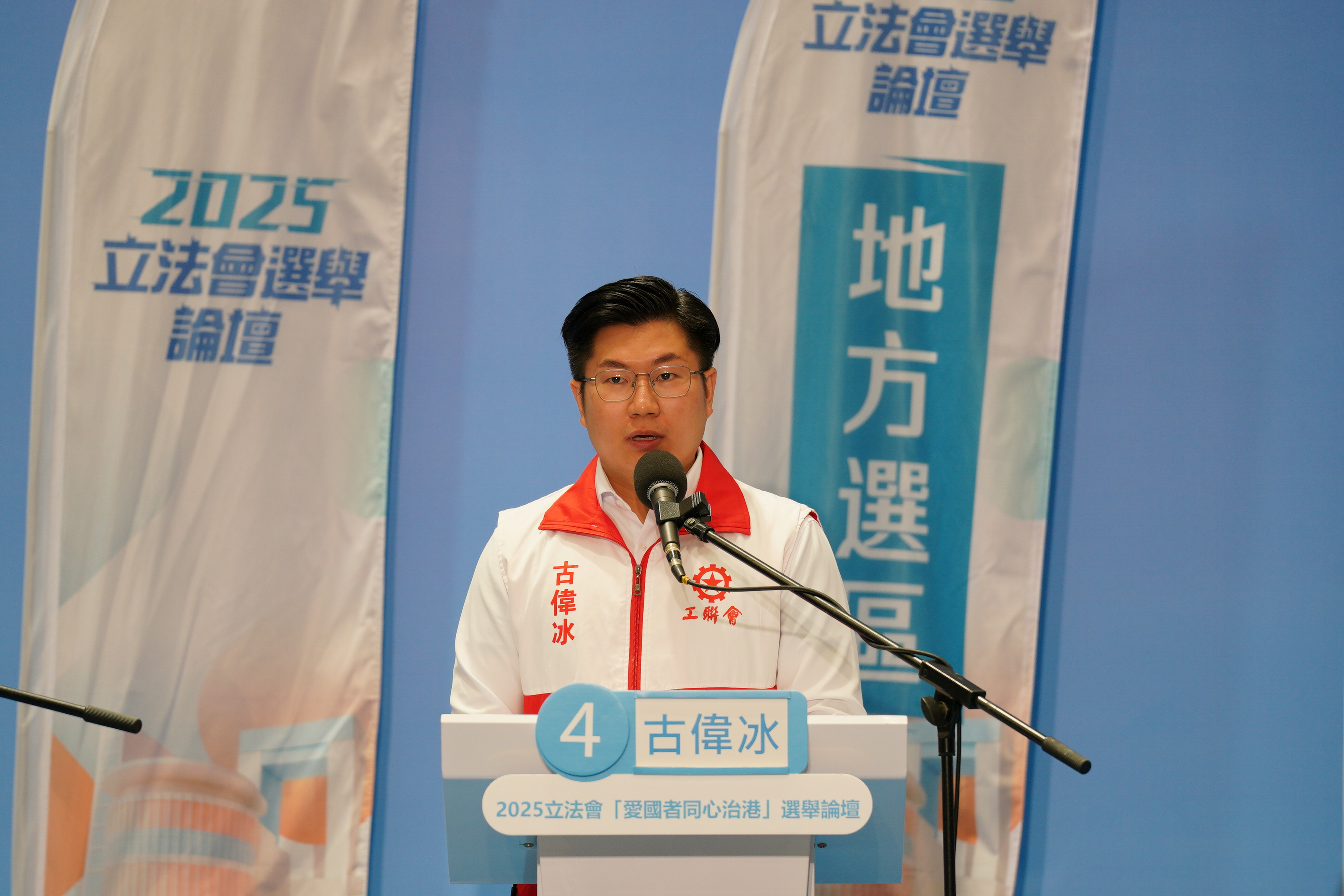 4號古偉冰是現任區議員,政治聯繫為工聯會,作為最年輕候選人,強調為打工仔與基層發聲。其政綱涵蓋青年置業儲蓄計劃、分級制育兒津貼、舒緩交通擠塞及增設地區醫療服務。他承諾秉承工聯會務實精神,直接回應市民生活需求,爭取改善民生。