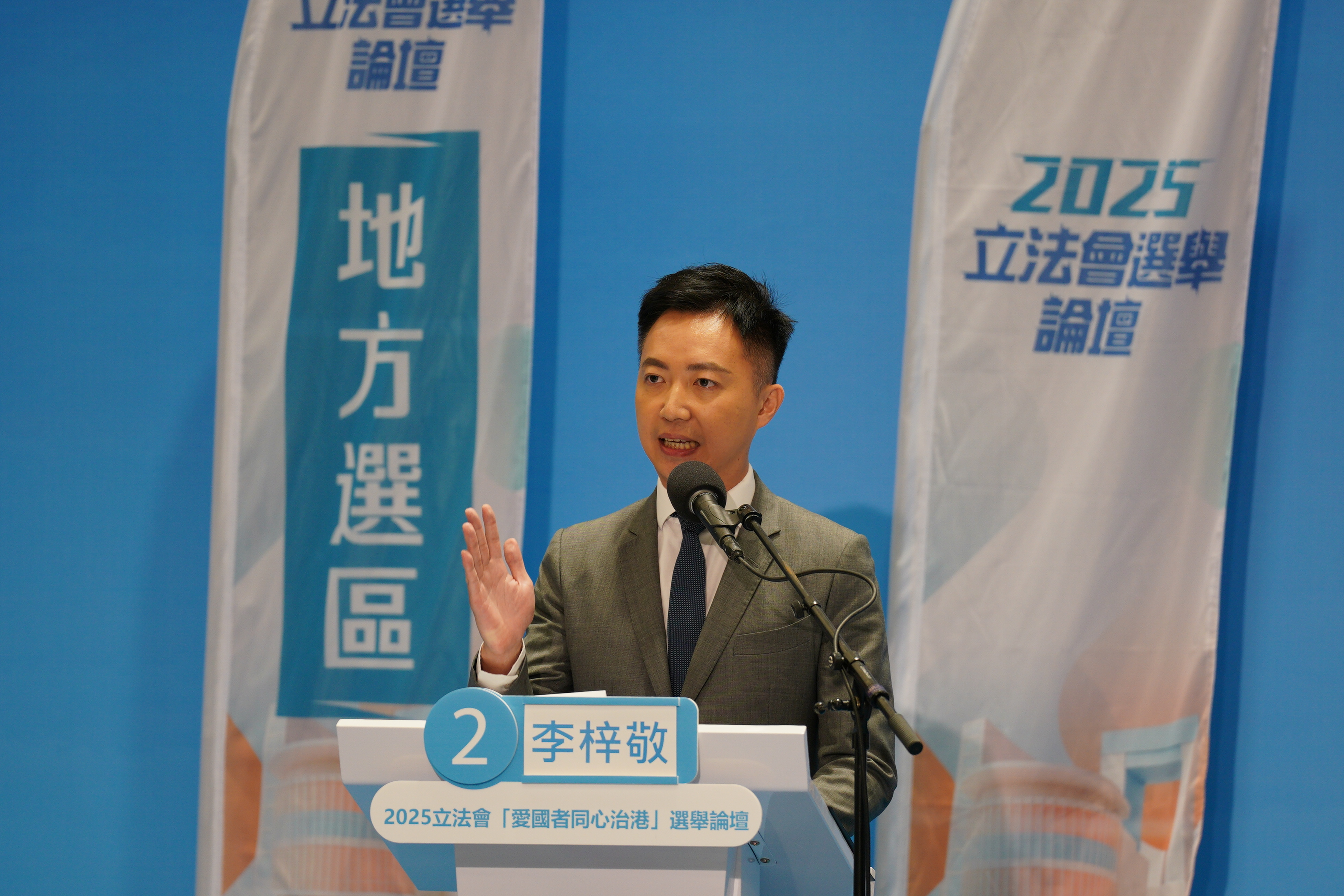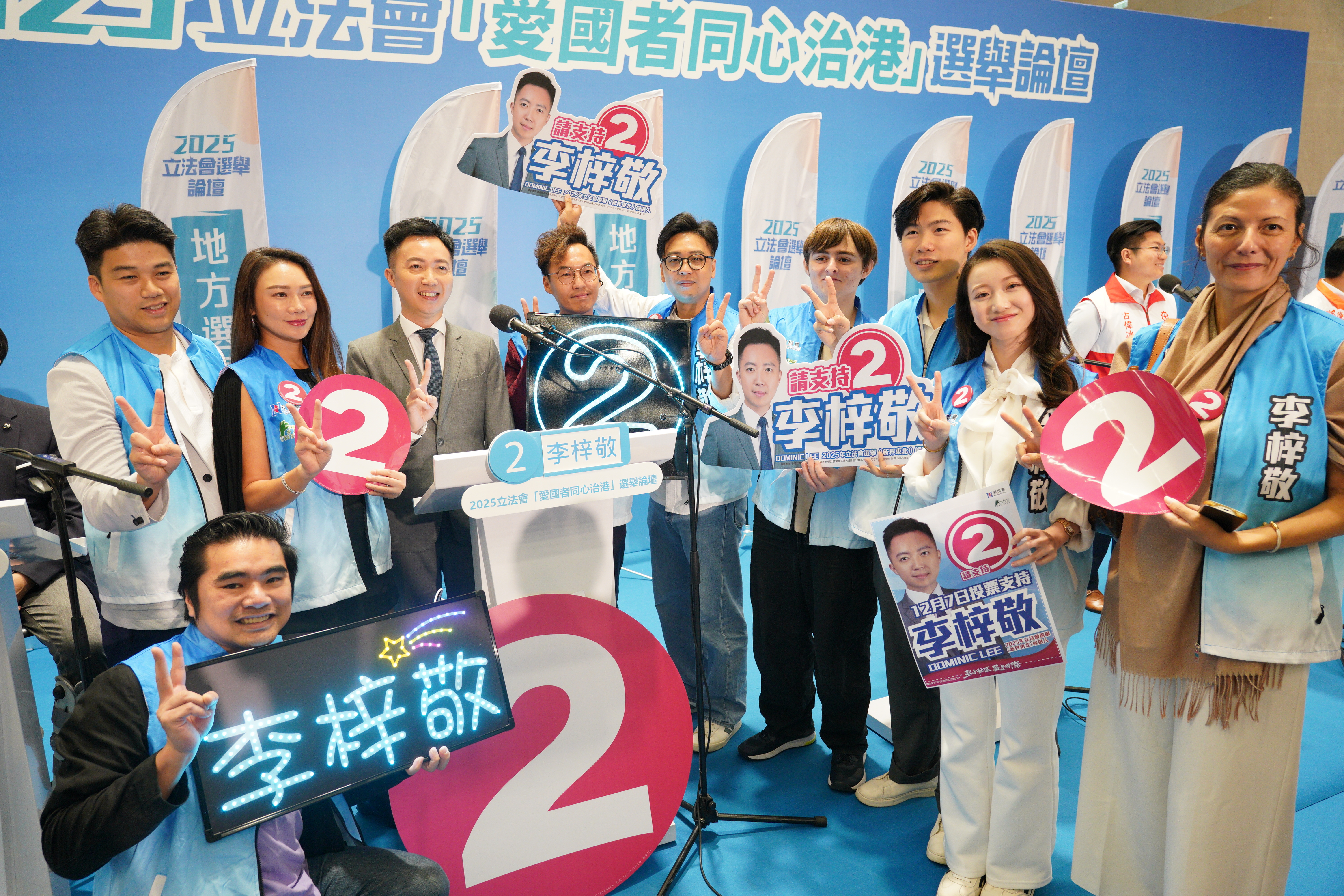 2號李梓敬是現任立法會議員,政治聯繫為新民黨、公民力量,以地區工作及國際發聲為核心。他列舉爭取隧道建設及巴士服務優化,承諾堅守社區服務。在國際層面,他致力反駁西方不實言論,推動「說好中國故事」的進程。他承諾未來將持續跟進港鐵站規劃及地區設施升級,爭取選民支持以延續服務。