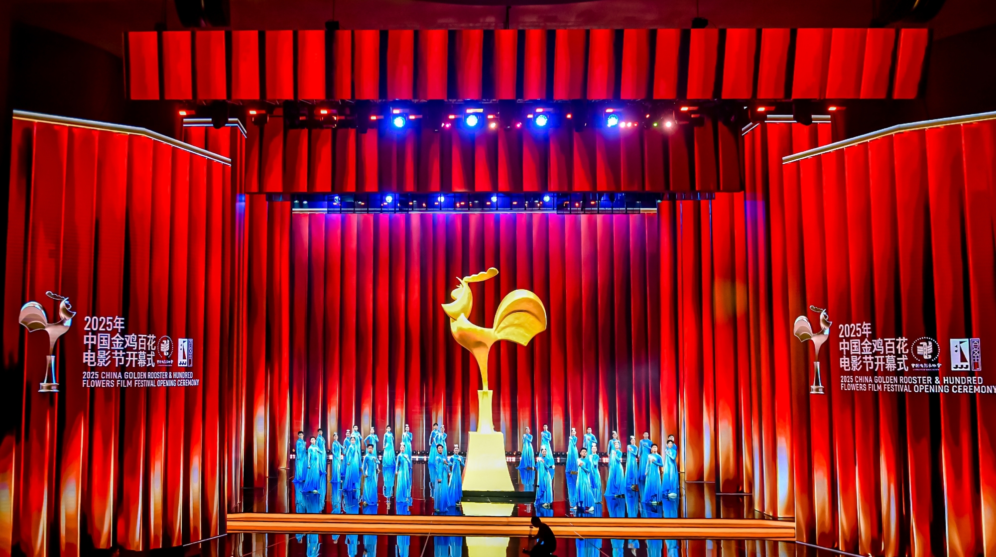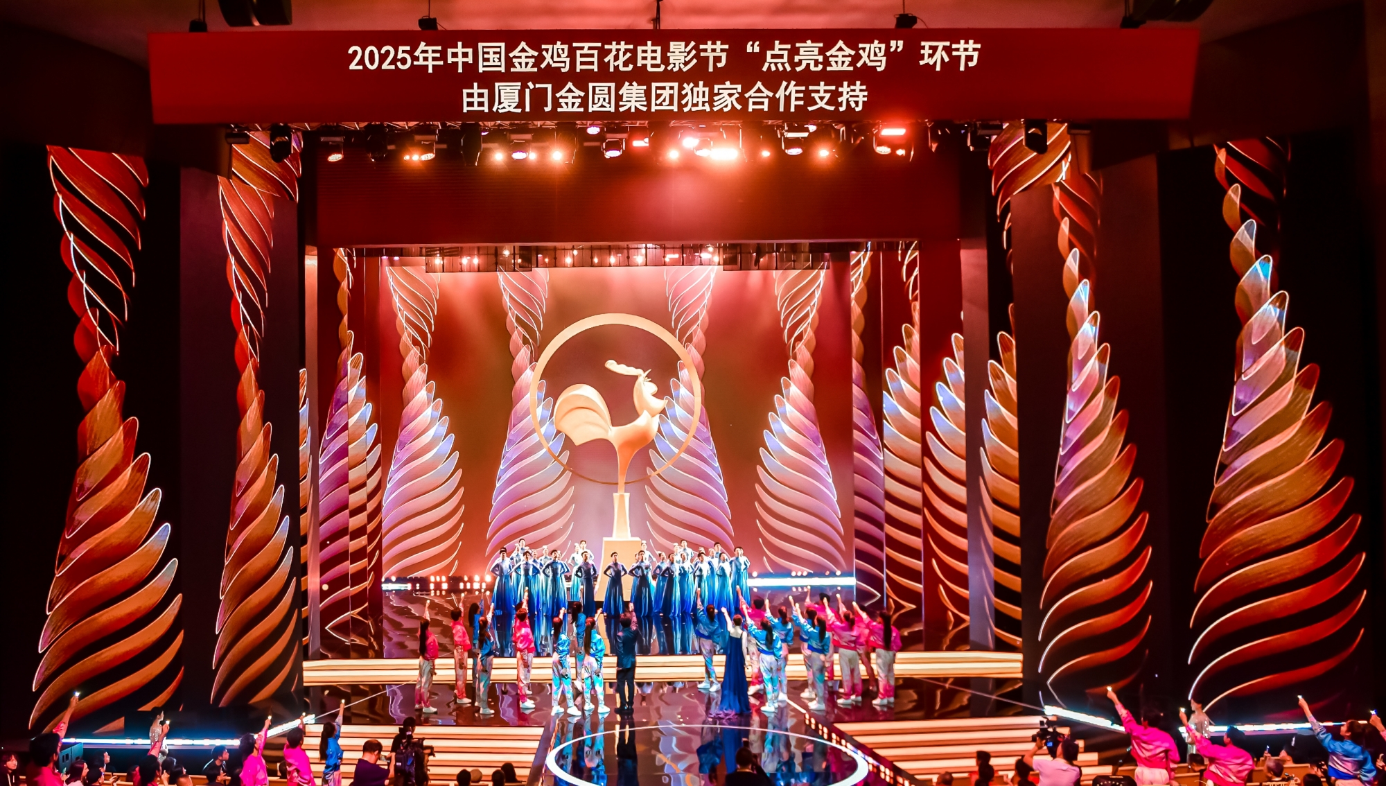 (大公文匯網記者 蔣煌基 廈門報道)11日晚間,2025年中國金雞百花電影節開幕式在福建廈門啟幕。適逢中國電影誕生120周年、世界電影誕生130周年,本屆電影節以「光影·新觀念」與「作品·新大眾」為主線,備受矚目的「點亮金雞」環節由演員黃渤、周冬雨共同完成,儀式風格現代簡約、詩意浪漫,成為開幕式的視覺高潮。開場音樂《光影長河》由香港作曲家陳玉彬、林鈞暉聯袂內地音樂人創作,串聯《男兒當自強》、《新不了情》等經典電影主題曲,喚起跨越年代的光影記憶,呈現了一場致敬歷史、擁抱未來的光影盛典。