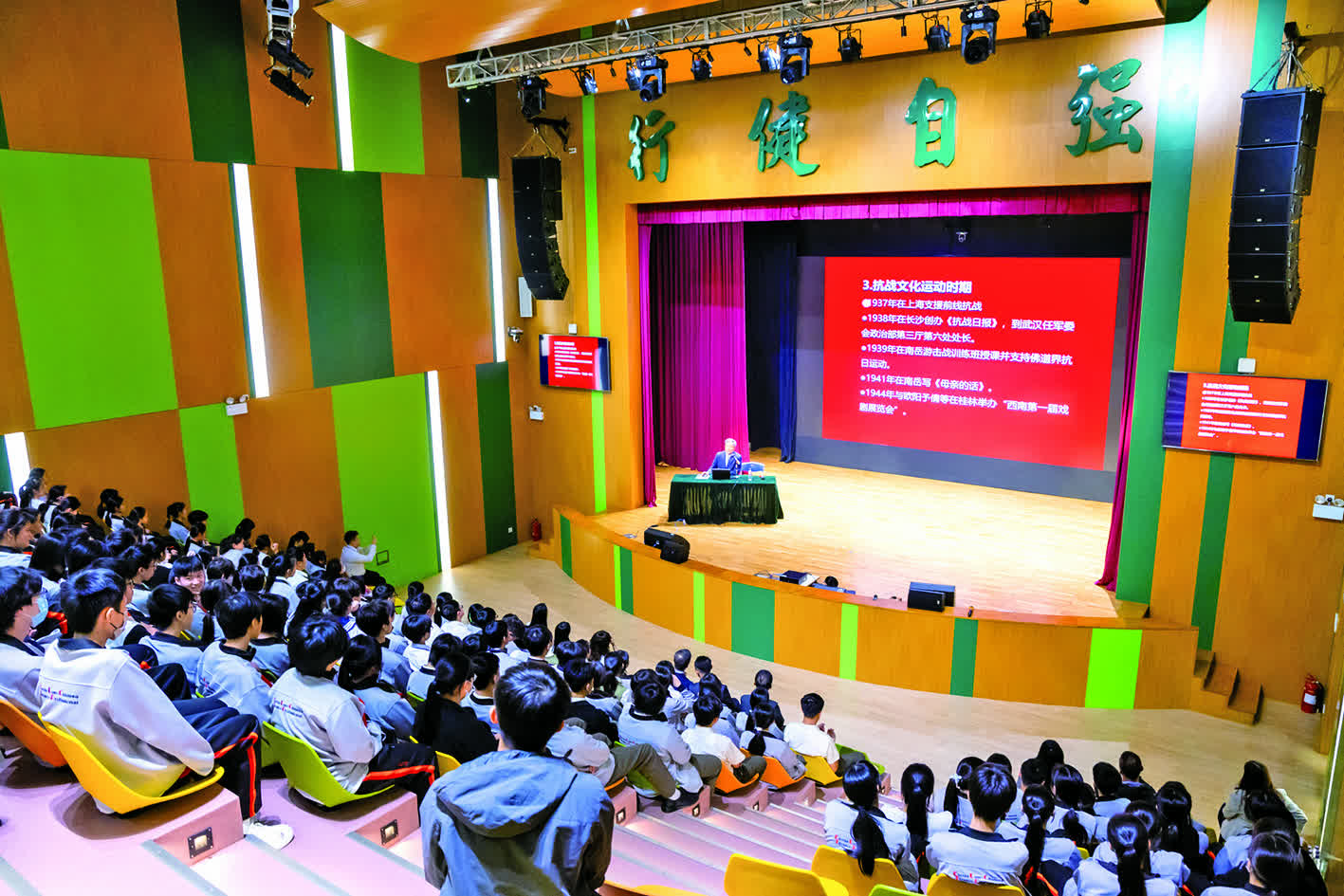 黃嘉祺在致辭中勉勵青年學生要銘記抗戰歷史、珍愛和平,期望通過粵澳姐妹學校的合作與交流,傳承和弘揚偉大抗戰精神,冀教育界同仁共同探索新時代愛國主義教育的方向。
