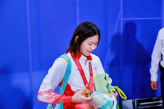 頒獎時,全紅嬋低頭久久凝視着金牌,還不停地撫摸。賽後,全紅嬋發博表示:「我真棒」。網友紛紛留言點讚:「全紅嬋還是全紅嬋,辛苦了!」「我們繼續賽場見!」