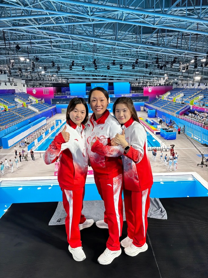 11月2日,在第十五屆全運會跳水項目女子團體比賽中,全紅嬋搭檔王偉瑩出戰女團雙人10米台,3跳穩定發揮,以235.86的總成績排名第一,幫助廣東隊女團奪金。時隔183天再次亮相賽場的全妹水花控制依舊出色,和搭檔王偉瑩配合默契。