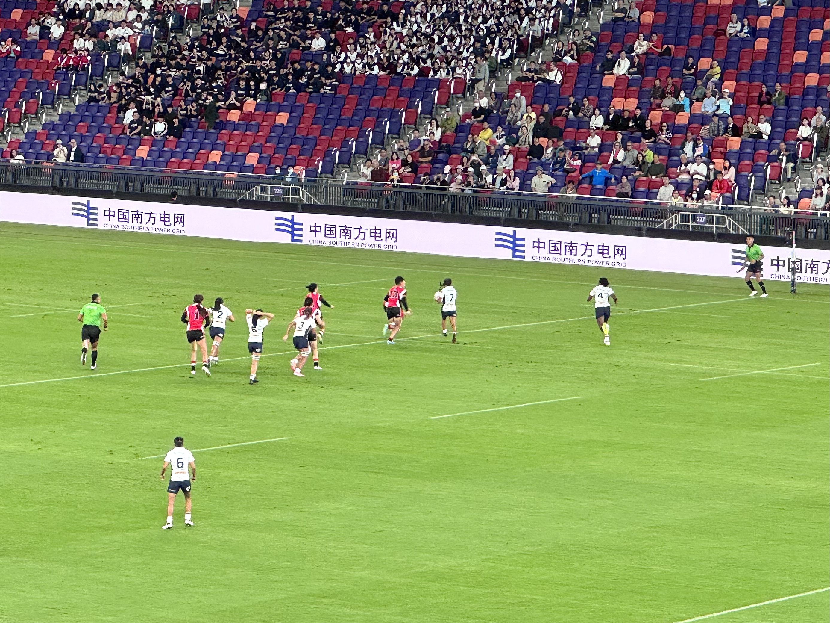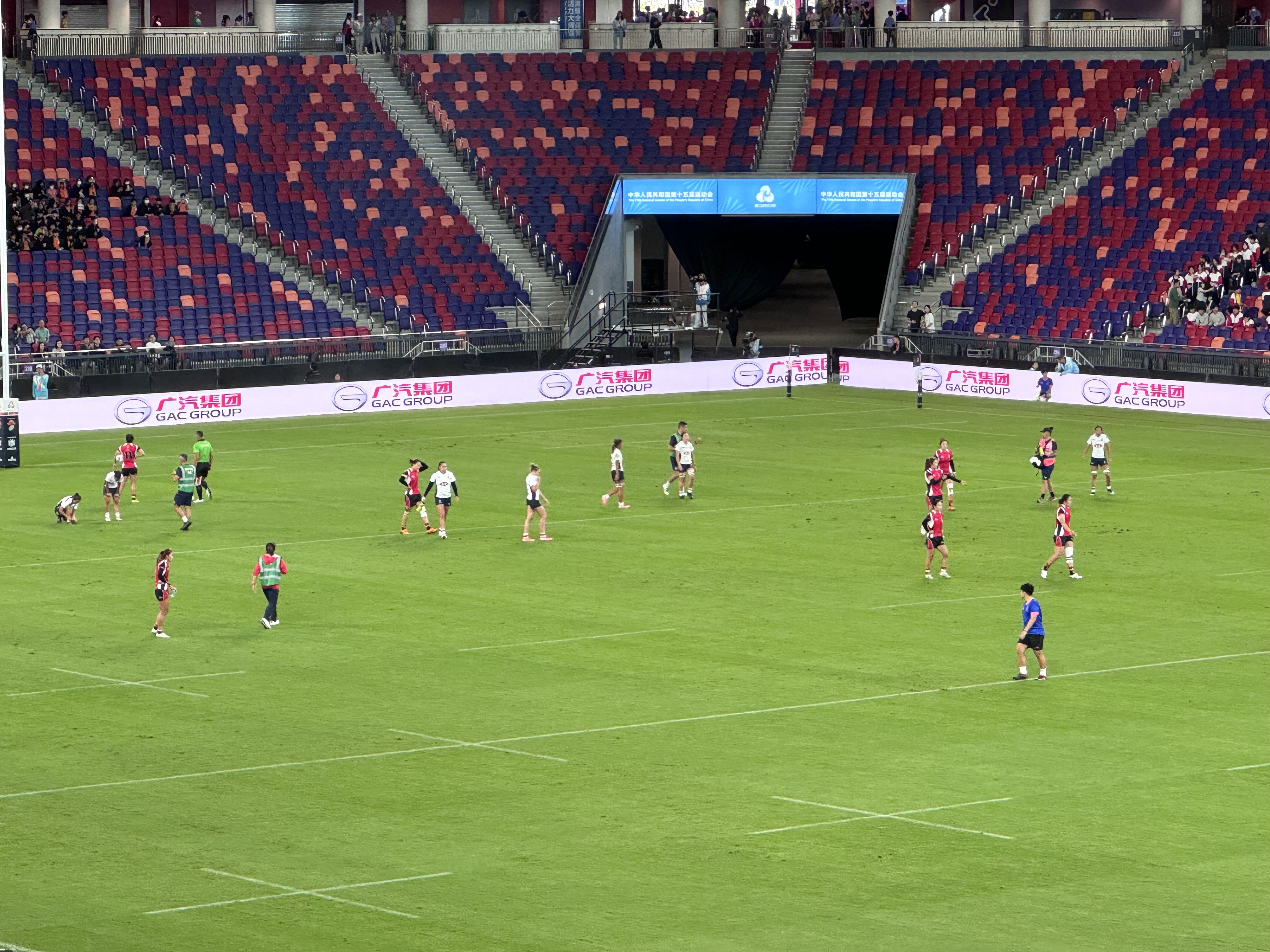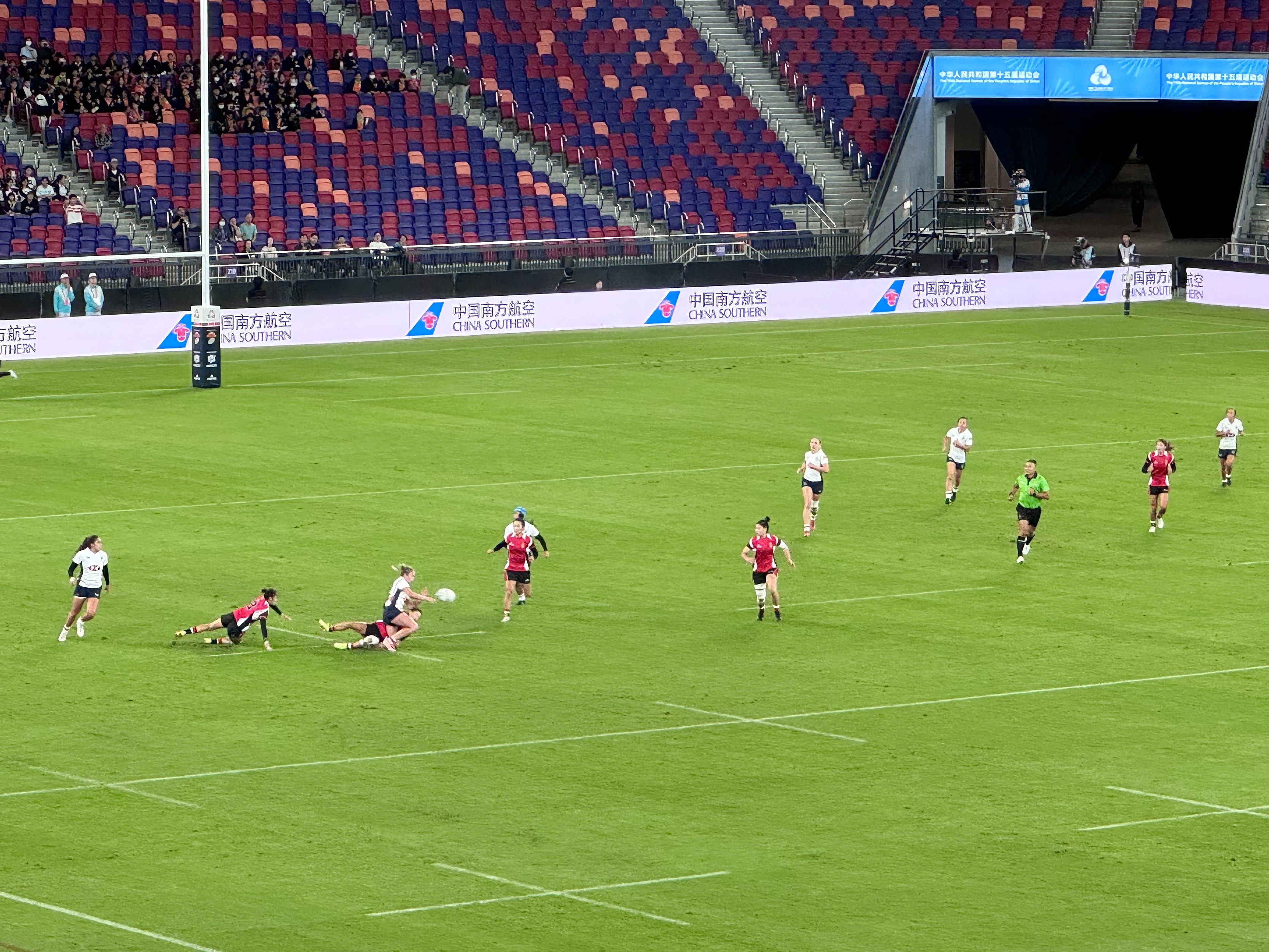 下半場短暫休息後繼續進行,山東隊3號球員唐銘琳以達陣為隊伍獲得5分,11號球員徐曉燕追加射門將比分差距拉開,山東隊以14∶7領先香港隊。下半場中後段,山東隊連續成功得分,比分擴大到26∶7,香港隊亦全力拚搏到最後一刻,該場小組賽最終以山東隊31∶12取得比賽勝利。