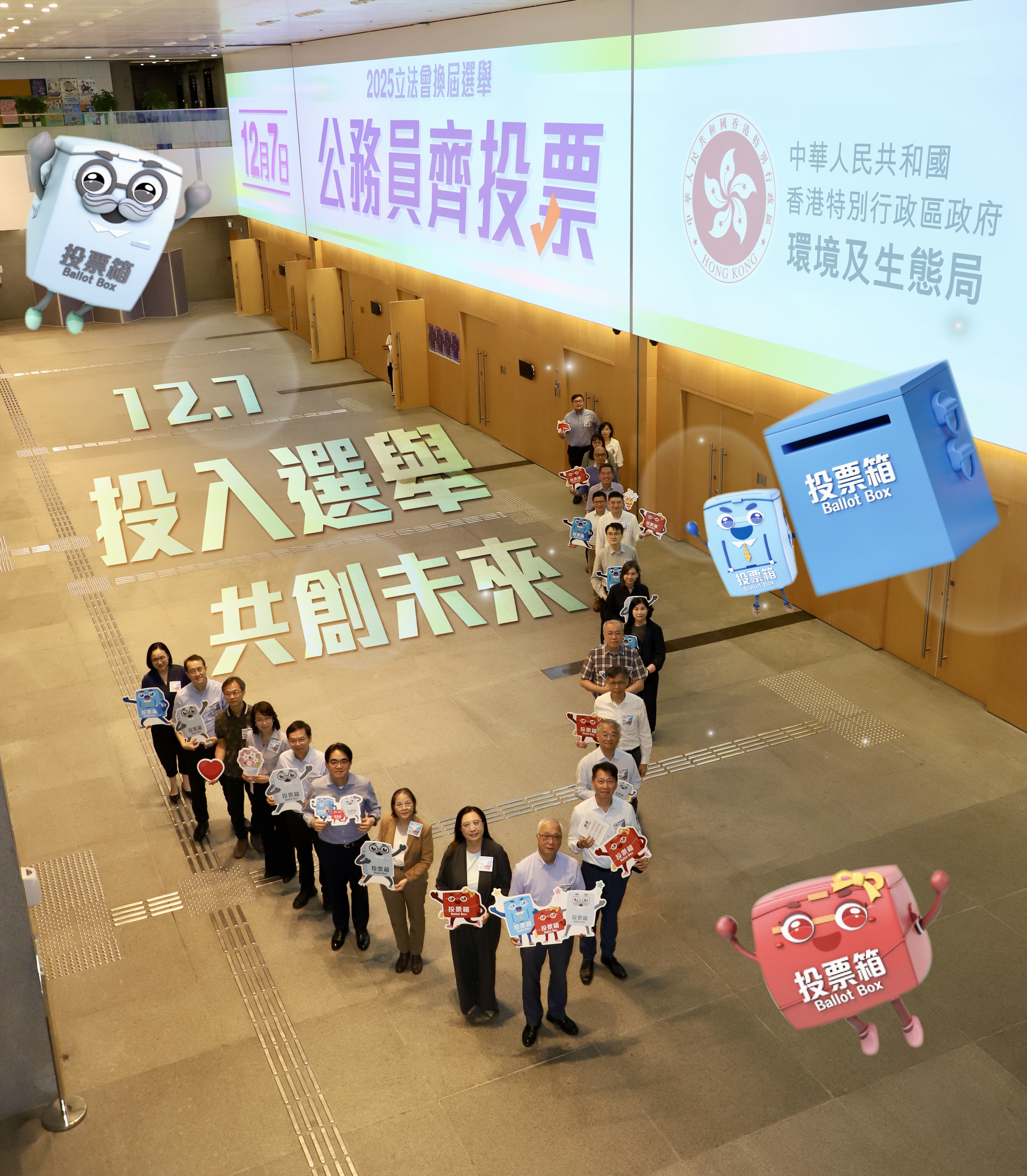 環境及生態局全力支持立法會選舉。謝展寰局長早前召開了誓師大會,當中包括兩位 (食物)、(環境)常任秘書長楊碧筠及張國財、副局長黃淑嫻,以及局方轄下部門首長:食環署署長吳文傑、環保署署長徐浩光博士、漁護署署長黎堅明、天文台台長陳栢緯博士及政府化驗師李偉安博士等高層代表出席。局長鼓勵各部門群策群力,全力投入選舉,並傳達公務員亦應以身作則,在12月7日投票日踴躍投票的重要訊息。