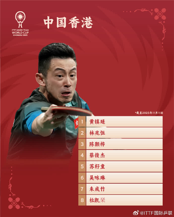 2025乒乓球混合團體世界盃將於11月30日至12月7日在成都舉行。