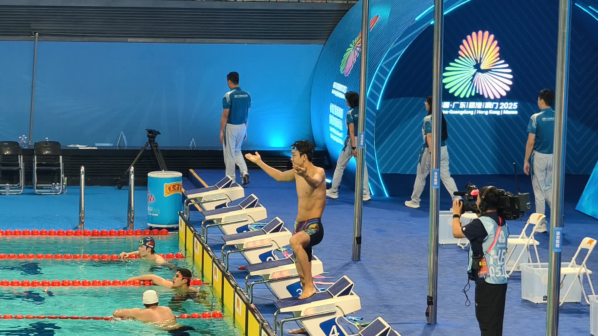 (大公文匯網記者胡永愛、李望賢、石華)11月12日晚,在十五運會男子200米自由泳決賽現場,18歲的張展碩破全國青年記錄,以1分44秒86獲得第一。奪冠後,他單腳站在起跳台上,示意觀眾給自己掌聲與歡呼。