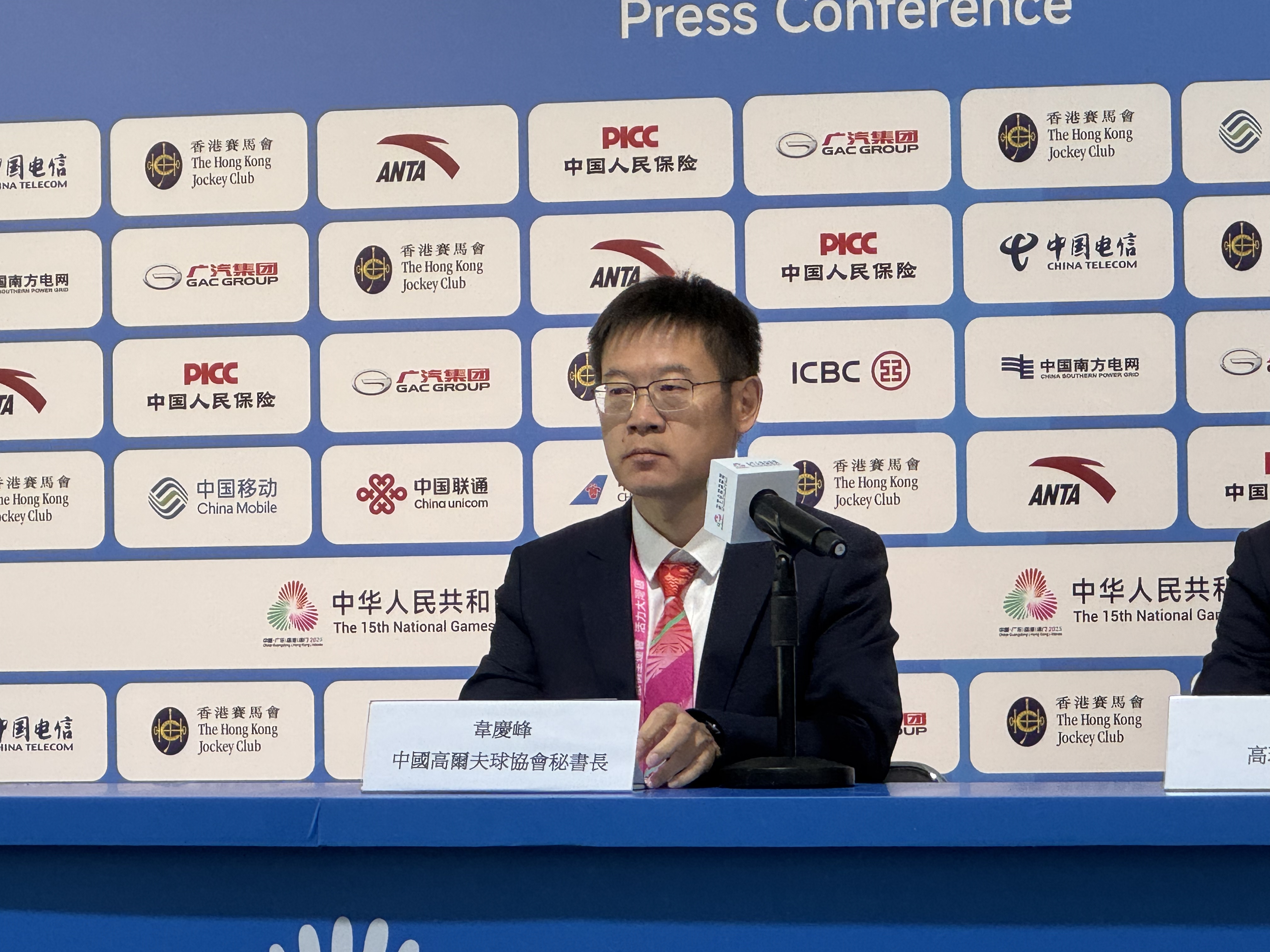 中國高爾夫球協會秘書長韋慶峰致辭時介紹賽事籌備工作,指於去年9月和11月及今年8月對粉嶺球場共進行3次考察,感受到香港對承辦賽事的重視和認真,他稱「萬事俱備,只欠東風」。