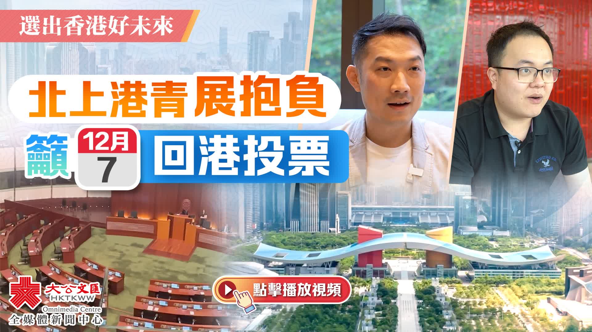 至於下月7日的立法會換屆選舉,潘智豪表示身為香港青年,一定會回港投票,又呼籲身處內地的港青積極回港投票,「香港來回深圳路程僅一小時,廣州兩小時,十分方便」,「選出心儀的立法會議員,亦是為香港未來貢獻力量」。