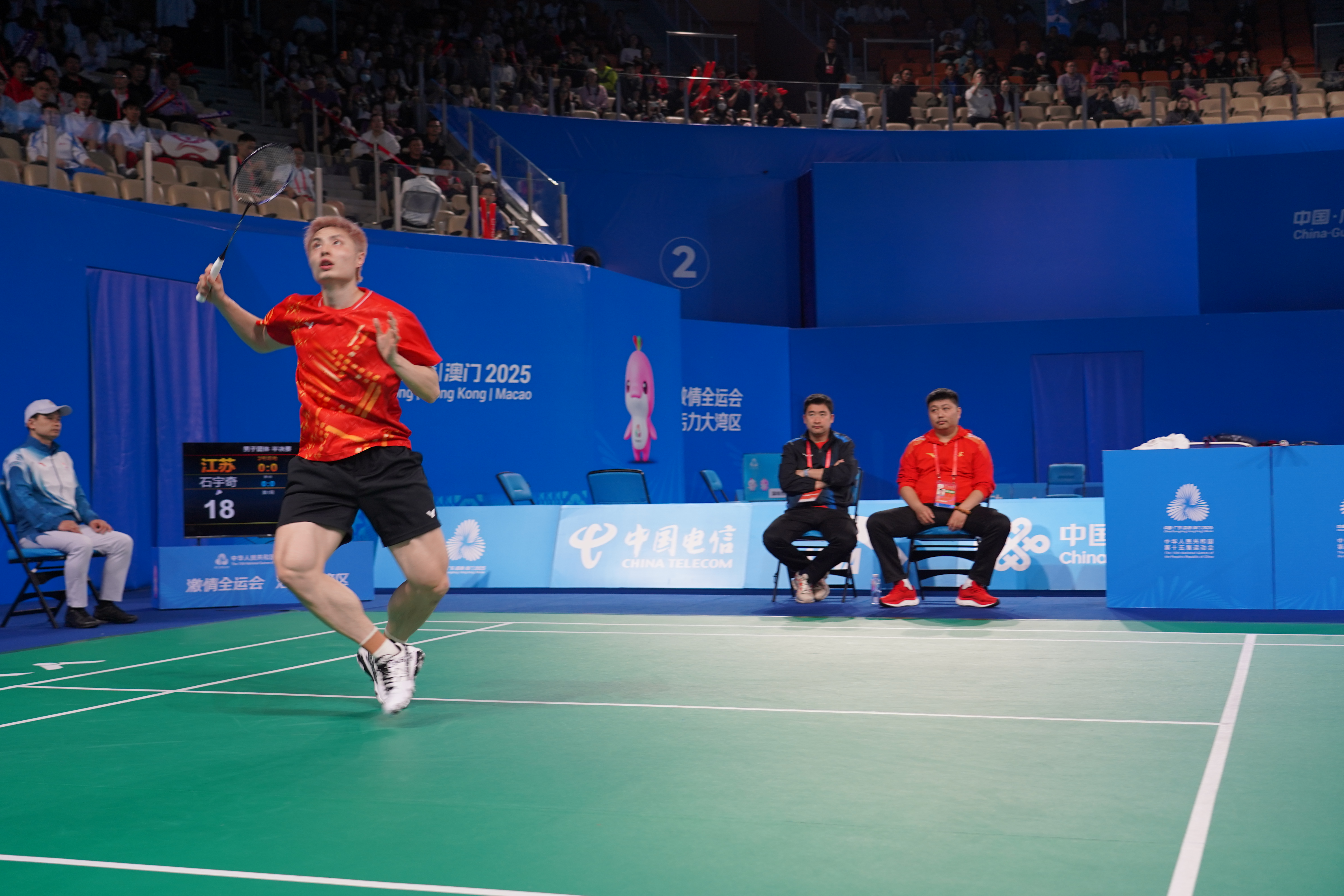 (大公文匯全媒體記者 郭若溪)今日(11月12日),第十五屆全國運動會羽毛球男團半決賽上演焦點對決,江蘇隊與湖南隊展開強強碰撞。國羽「一哥」石宇奇領銜出戰,以一場乾脆利落的2-0勝利為球隊奠定勝基,助力江蘇隊打破歷史包袱,首次闖入全運會男團決賽,成為本屆賽事最大黑馬。