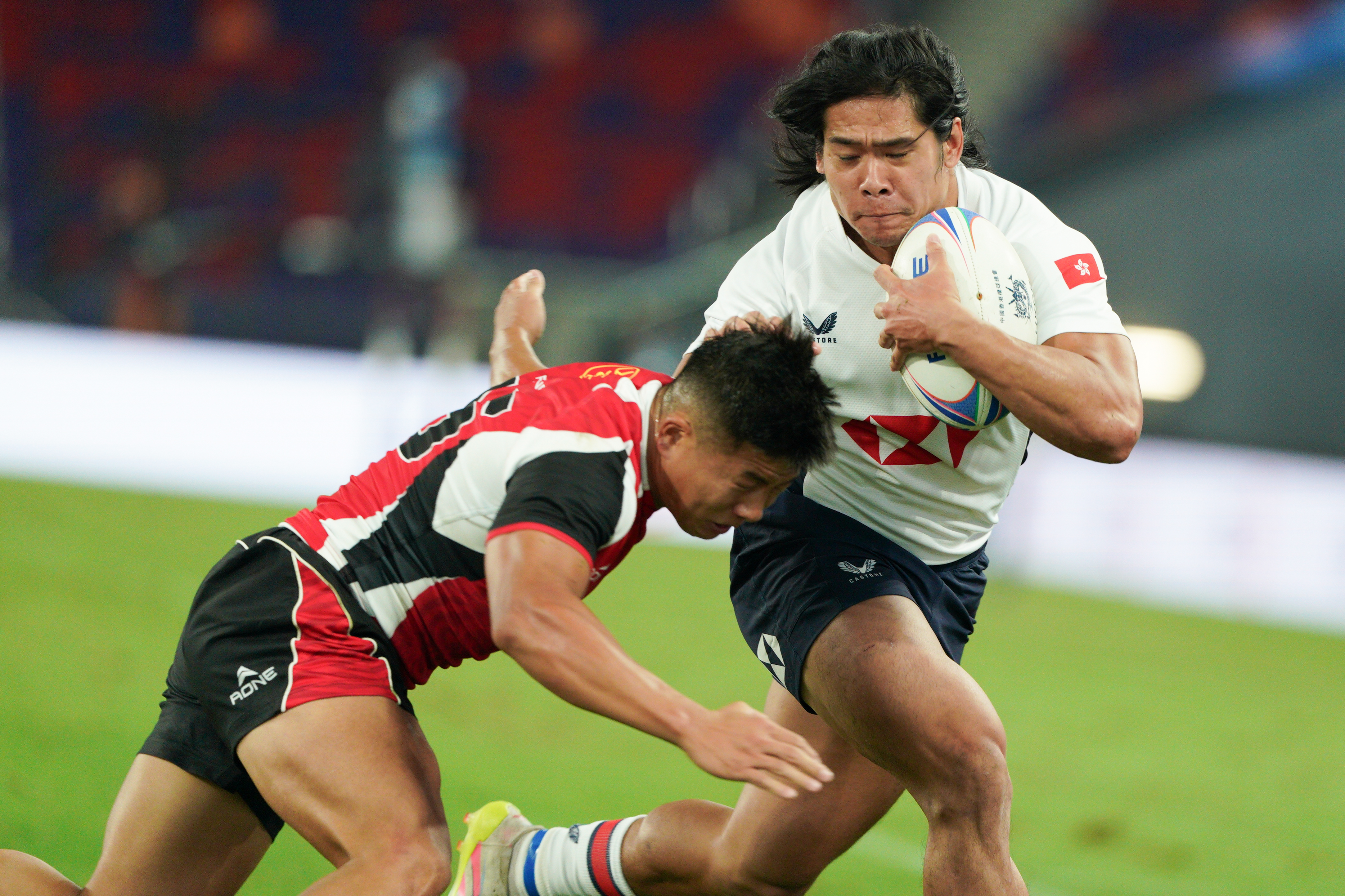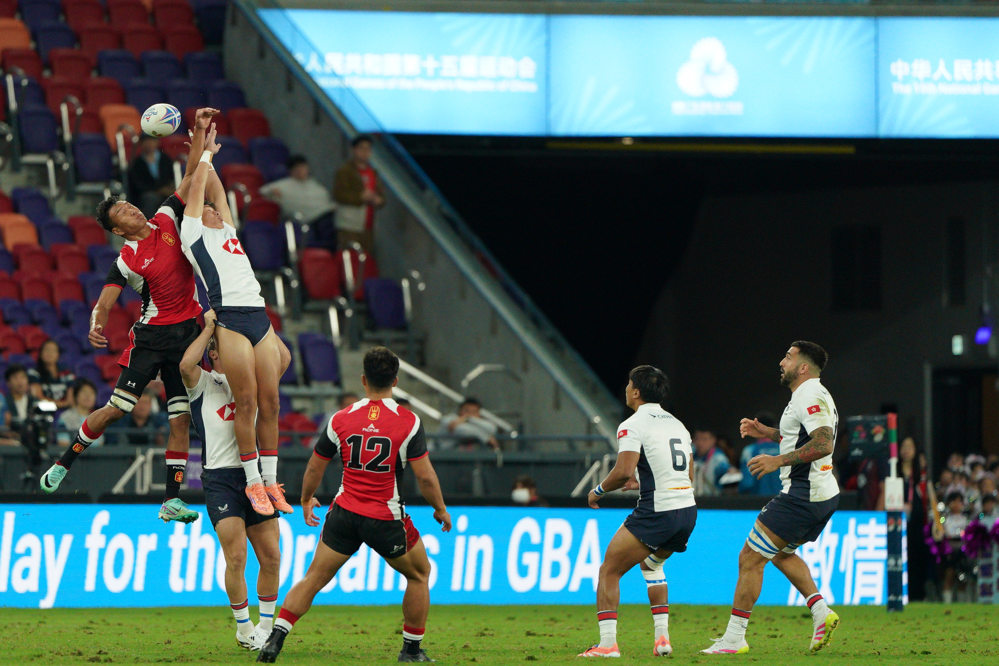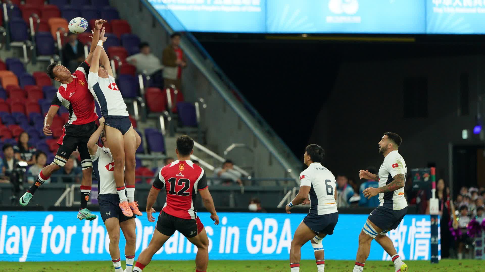 (大公文匯全媒體 記者 梁譯尹)第十五屆全運會香港承辦項目之一的七人欖球賽,今日(12日)起在啟德體育園主場館展開一連3日的比賽。香港男、女子七欖隊首日分別進行兩場小組賽,港隊男將的首場小組賽對陣實力強勁的山東隊,香港隊以24∶12擊敗山東隊。