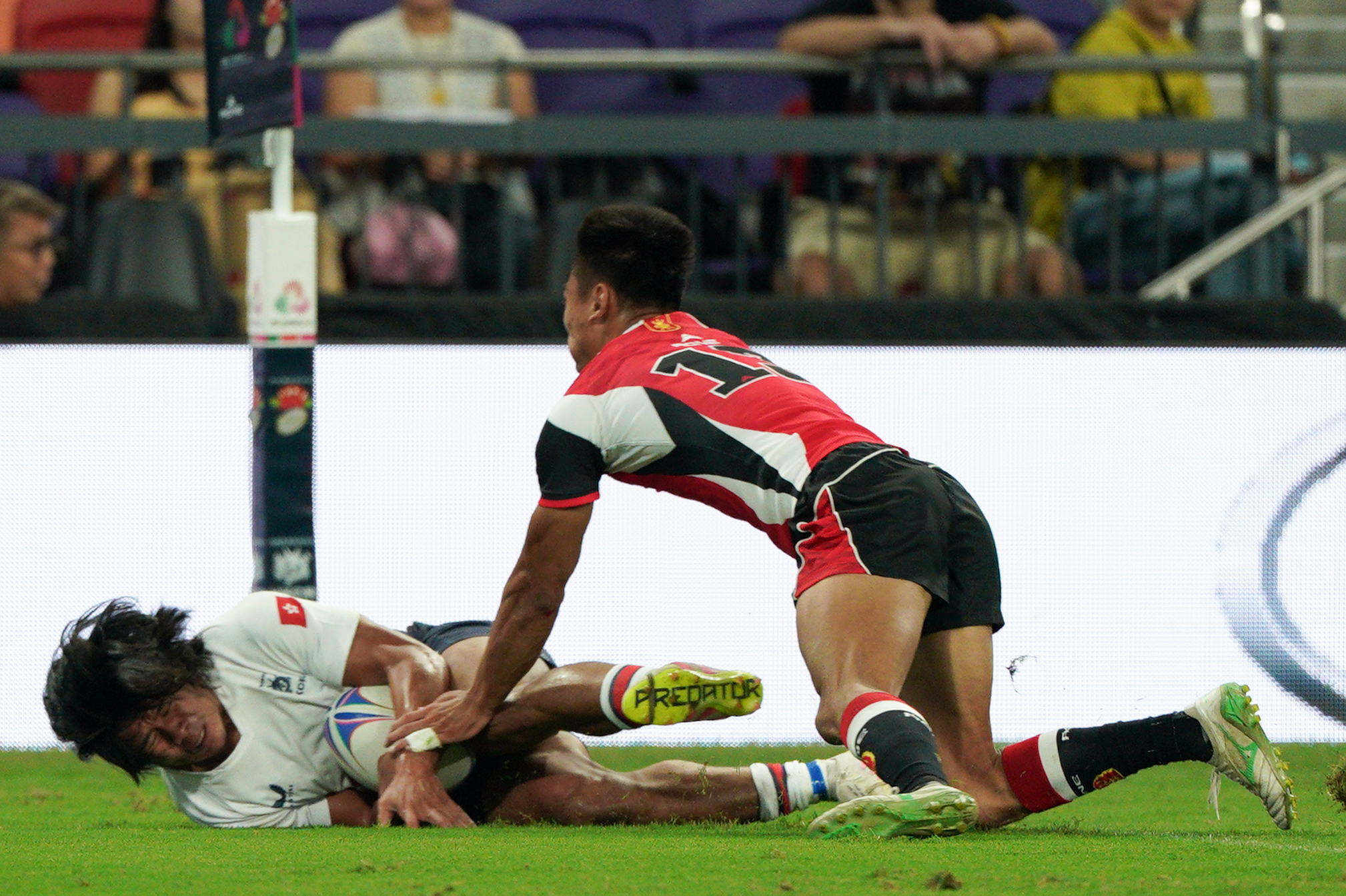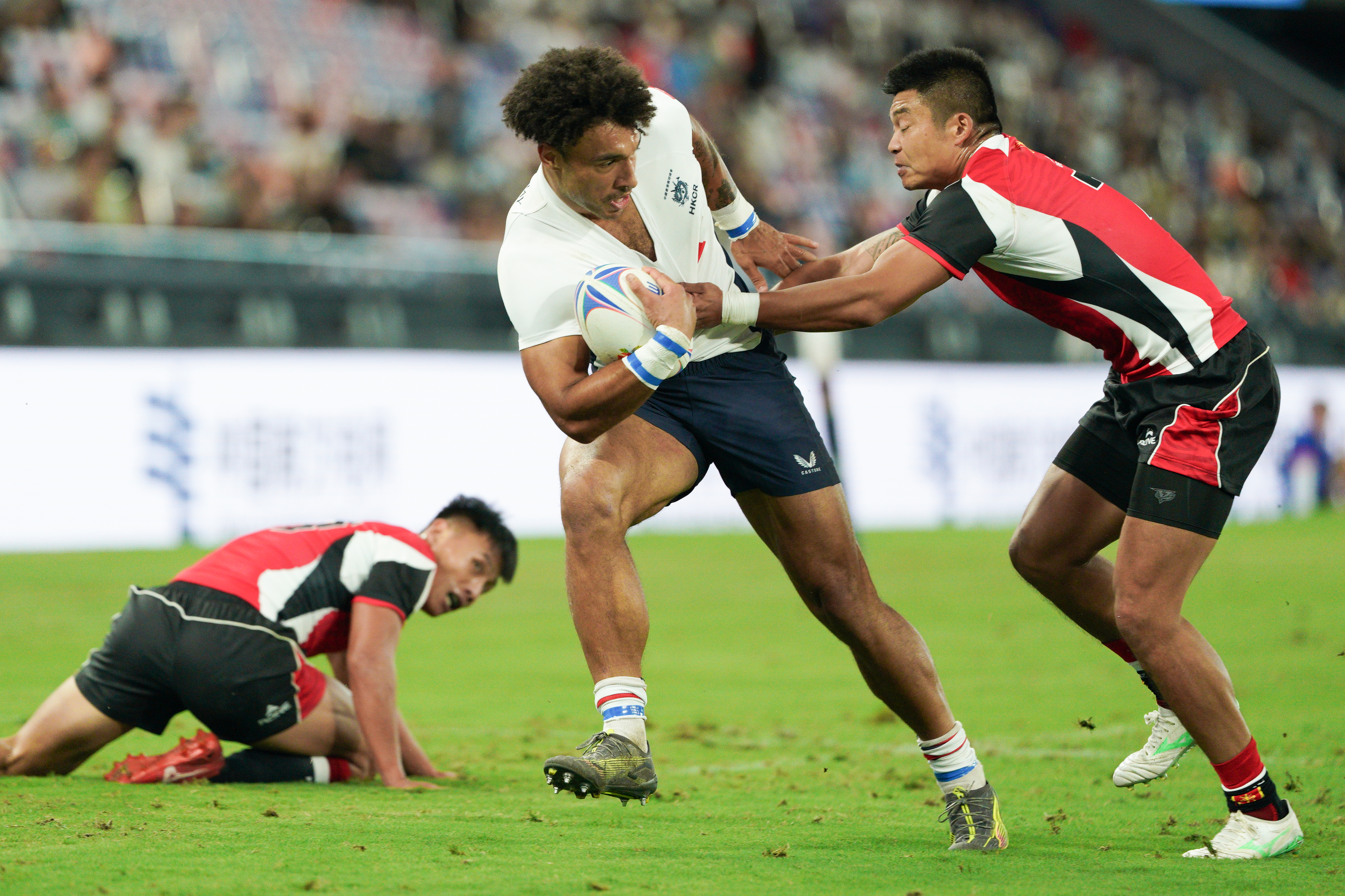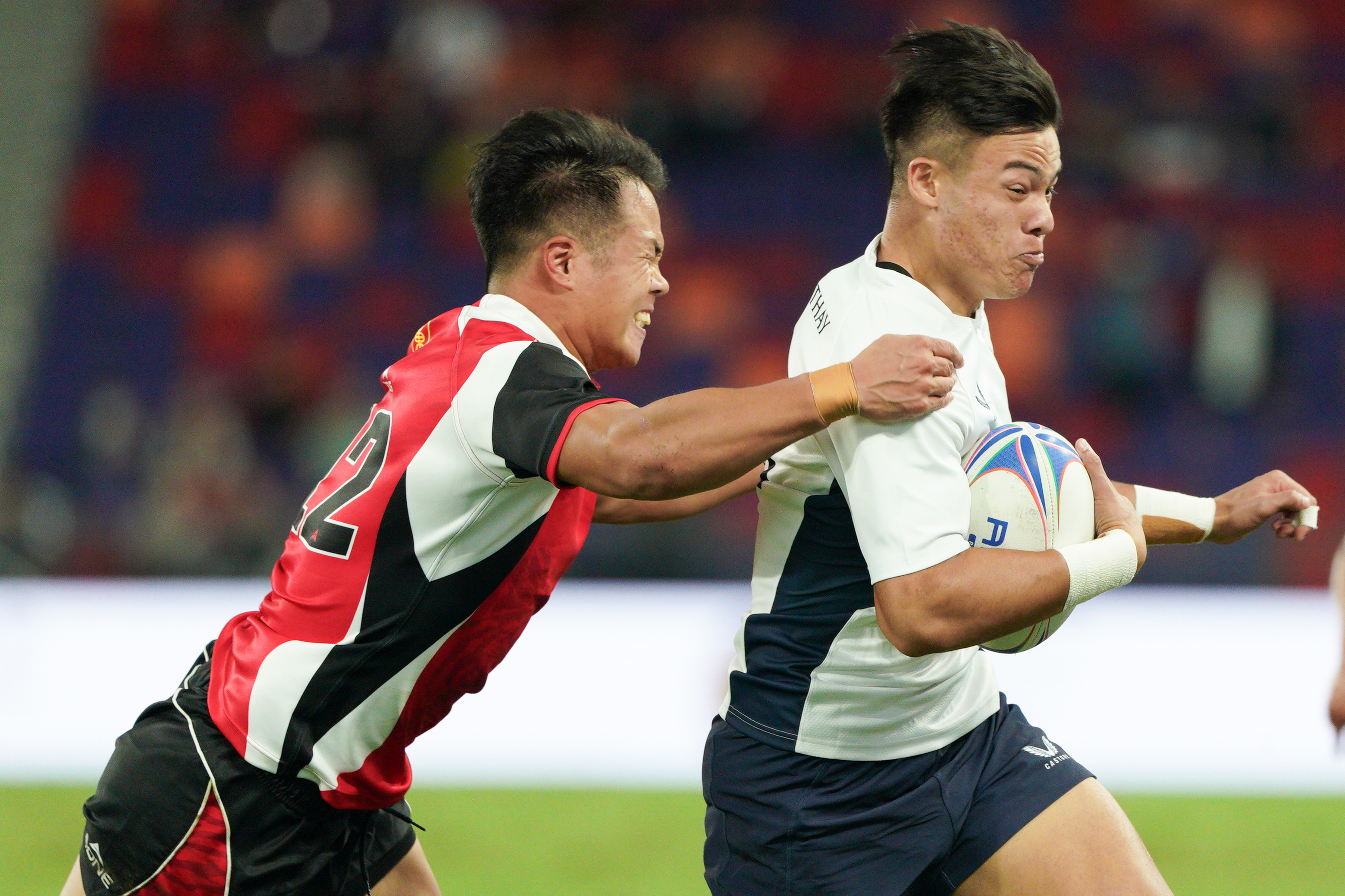 (大公文匯全媒體 記者 梁譯尹)第十五屆全運會香港承辦項目之一的七人欖球賽,今日(12日)起在啟德體育園主場館展開一連3日的比賽。香港男、女子七欖隊首日分別進行兩場小組賽,港隊男將的首場小組賽對陣實力強勁的山東隊,香港隊以24∶12擊敗山東隊。