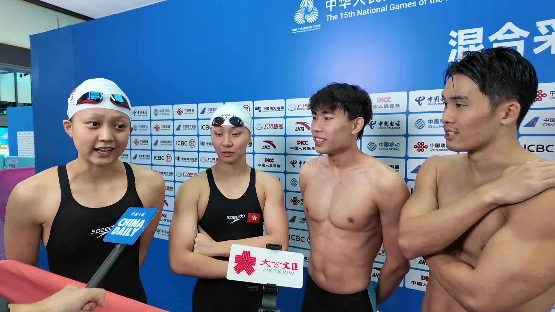 張芯瑤表示,跟世界冠軍一起游是很好的經驗。張心悅開心的說,出場的時候,跟在潘展樂身後,一路聽到很大的歡呼聲,「雖然知道不是在叫我,但都感到很興奮。」