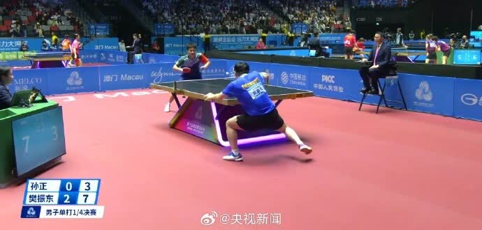 第十五屆全運會乒乓球男單1/4決賽,樊振東4-0戰勝孫正,強勢晉級半決賽。