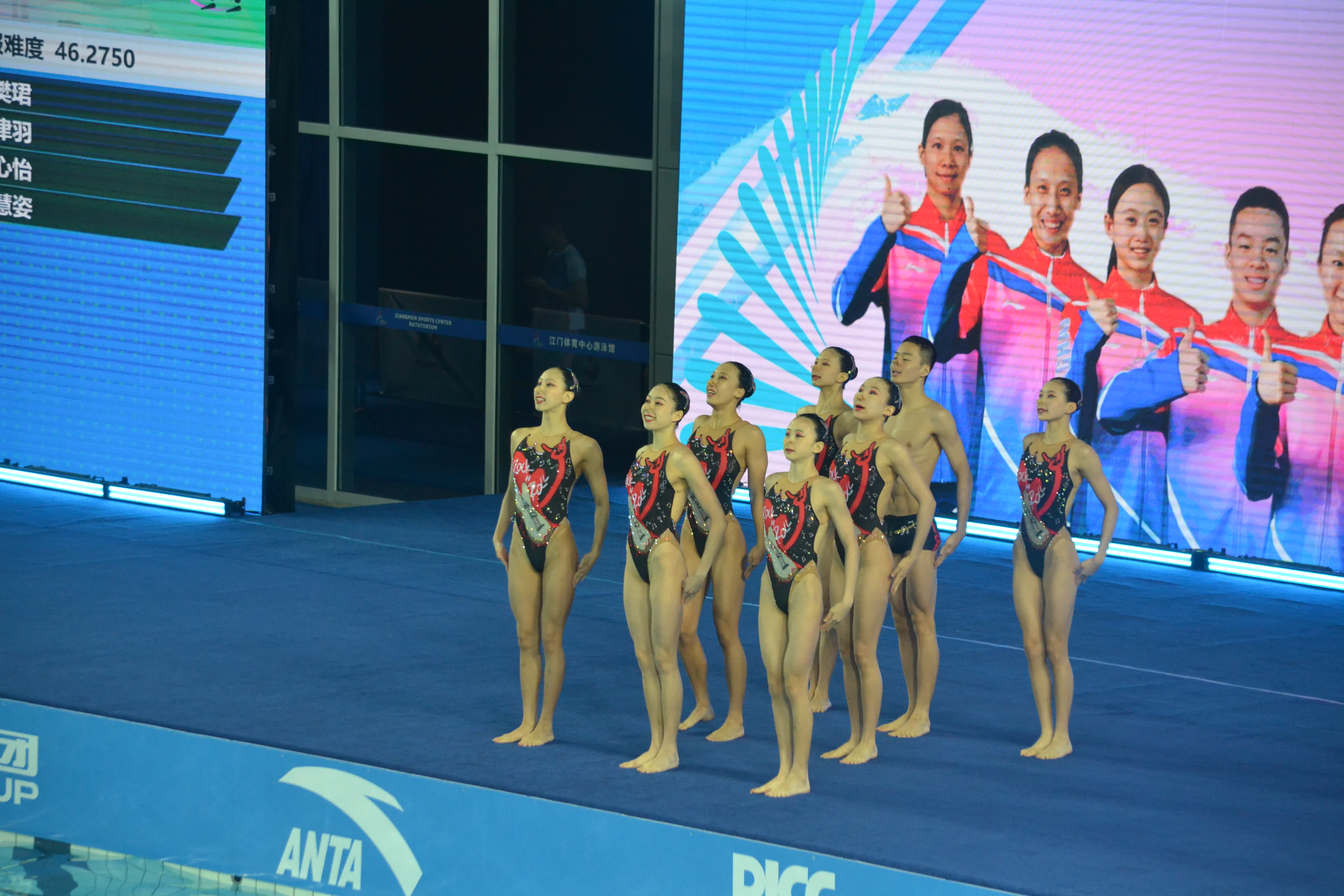 集體賽共分為集體技術自選、集體自由自選、集體技巧自選三個小項,三項成績匯總後,根據排名決定最後的決賽名單。記者在現場看到,無論是隊形、動作還是運動員造型,各隊都有不錯的表現,贏得觀眾陣陣掌聲。