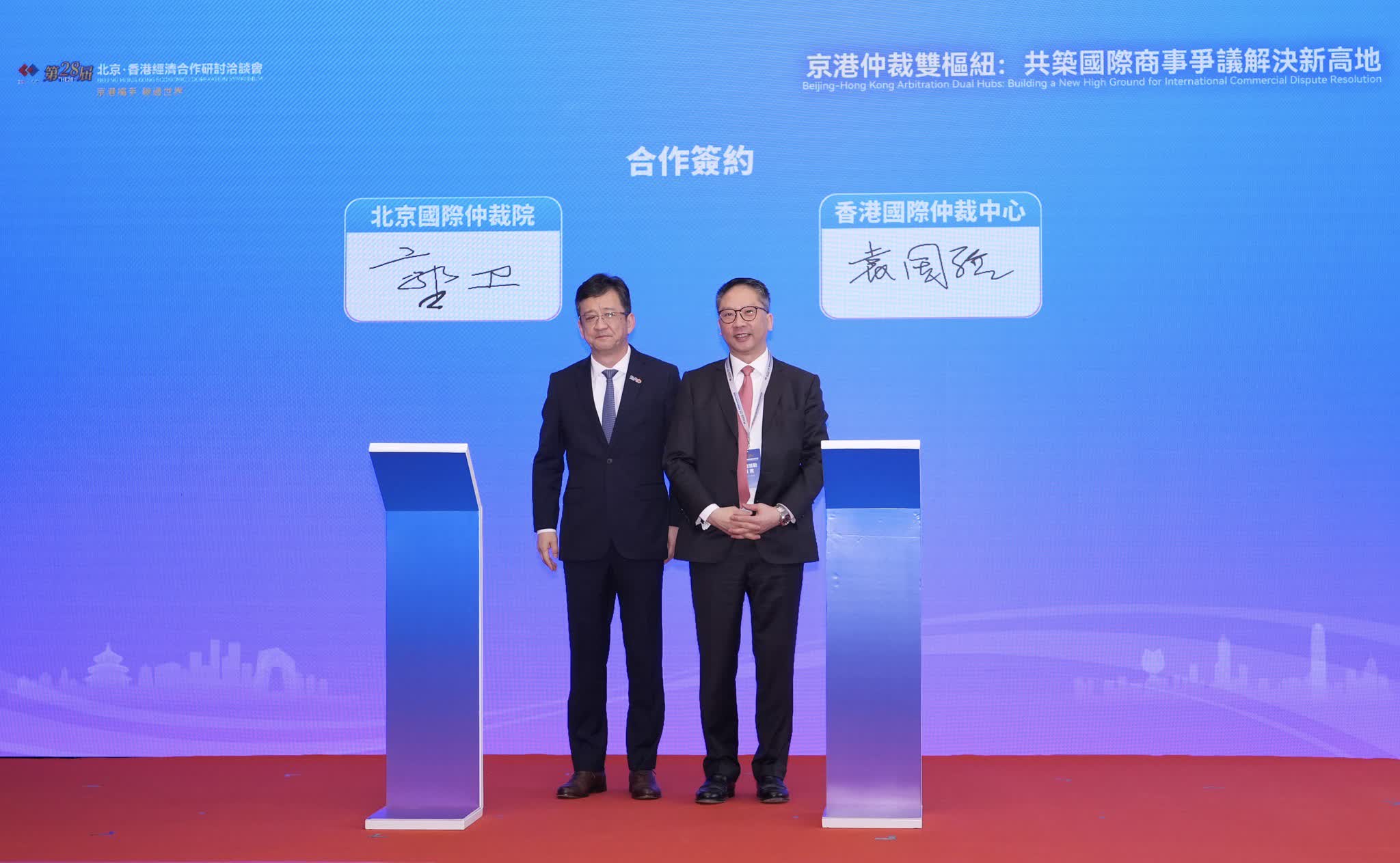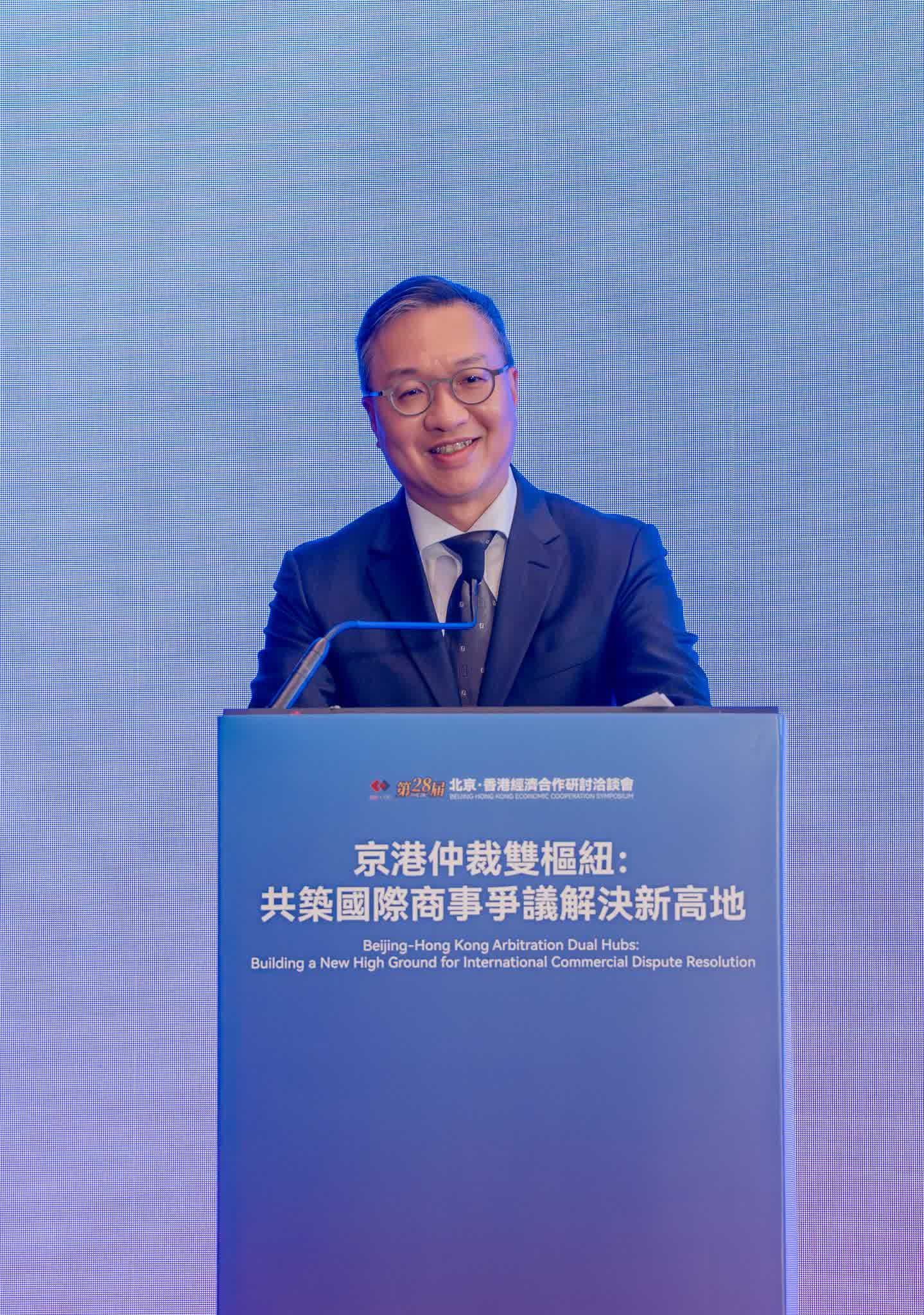 大公文匯全媒體報道,以「京港攜手 聯通世界」為主題的第28屆北京·香港經濟合作研討洽談會一連兩天正在香港會議展覽中心隆重舉行。特區律政司司長林定國今日(13日)出席京港仲裁法律服務專題推介活動,就「京港仲裁雙樞紐:共築國際商事爭議解決新高地」進行主題致辭。他指,香港國際仲裁中心去年於北京設立內地代表處,北京國際仲裁院香港中心亦於昨日正式啟幕。而京港的國際仲裁中心今日稍後會簽署合作備忘錄,以進一步提升兩地在爭議解決領域的全球競爭力,為國家推動高水平對外開放貢獻力量。