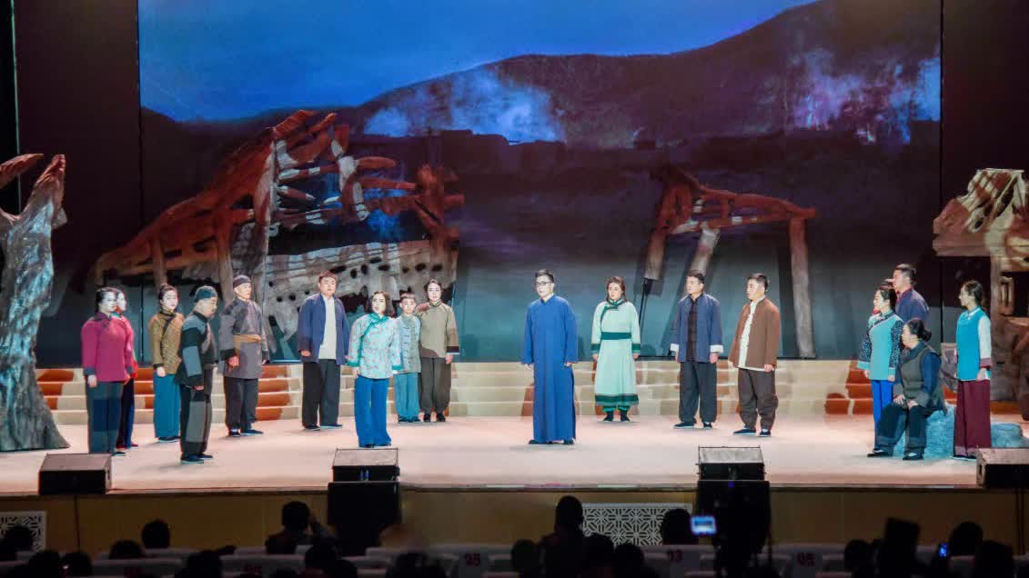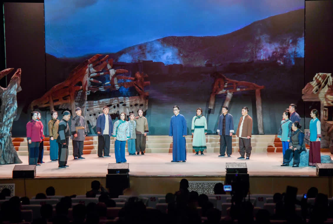 該劇以二十世紀三、四十年代綏遠抗戰為背景,以共產黨員紀松齡的革命歷程為主線,用東路二人台這一紮根北疆的非遺藝術形式,展現鑄牢中華民族共同體意識在烽火中淬鍊的壯闊畫卷。序幕裏,紀松齡入黨宣誓的場景莊重肅穆,「回察哈爾發動抗日救國」的誓言擲地有聲。隨後,從紀松齡在平地泉火車站「風乾雞」暗號接應的緊張,到為救百姓深陷牢獄,在監獄中堅守信仰的對峙,再到帶兵出征中的壯烈,直至大黑河保衛戰出征的激昂,一幕幕劇情扣人心弦,全場觀眾鼓掌聲久久不息。