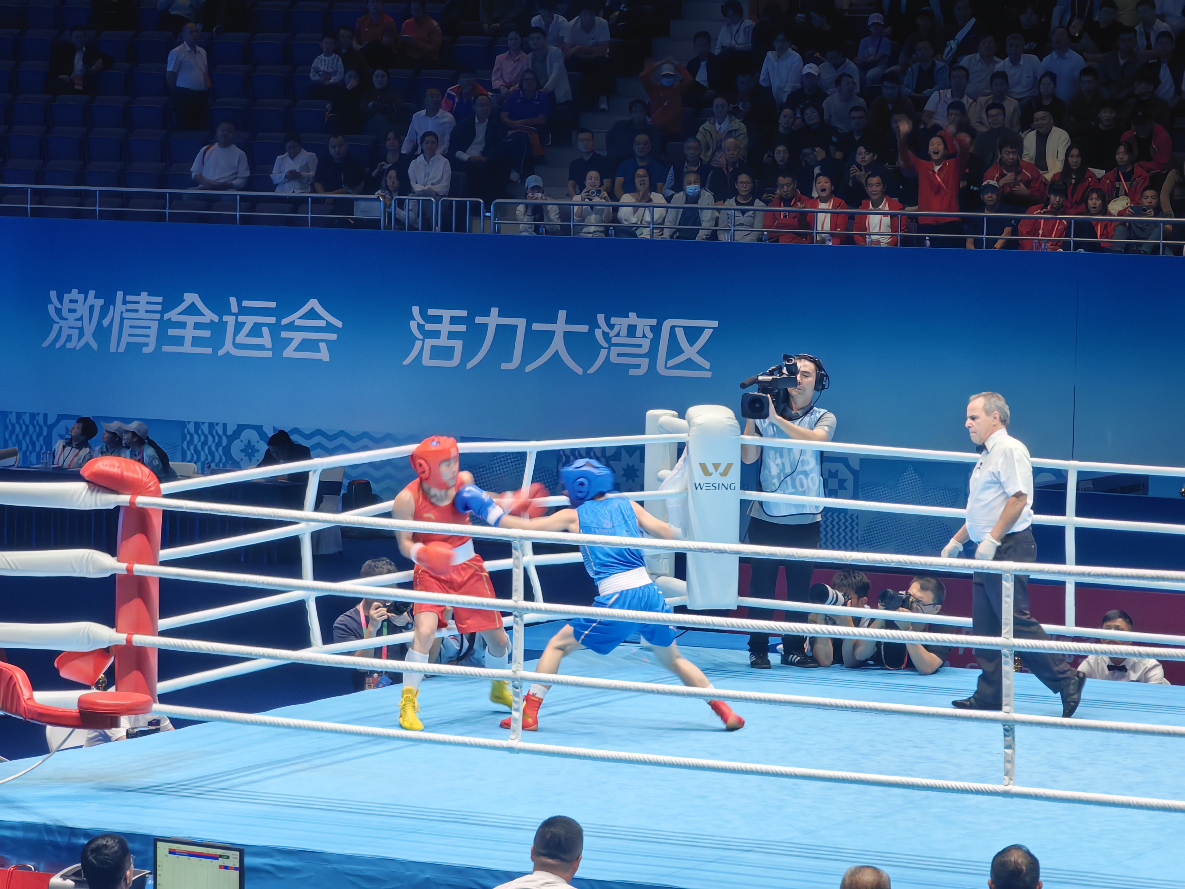 (大公文匯網 記者 郭若溪)11月13日,第十五屆全國運動會拳擊比賽在深圳市寶安體育中心體育館舉行,多場巔峰對決輪番上演,賽場內外掌聲與吶喊聲此起彼伏。
