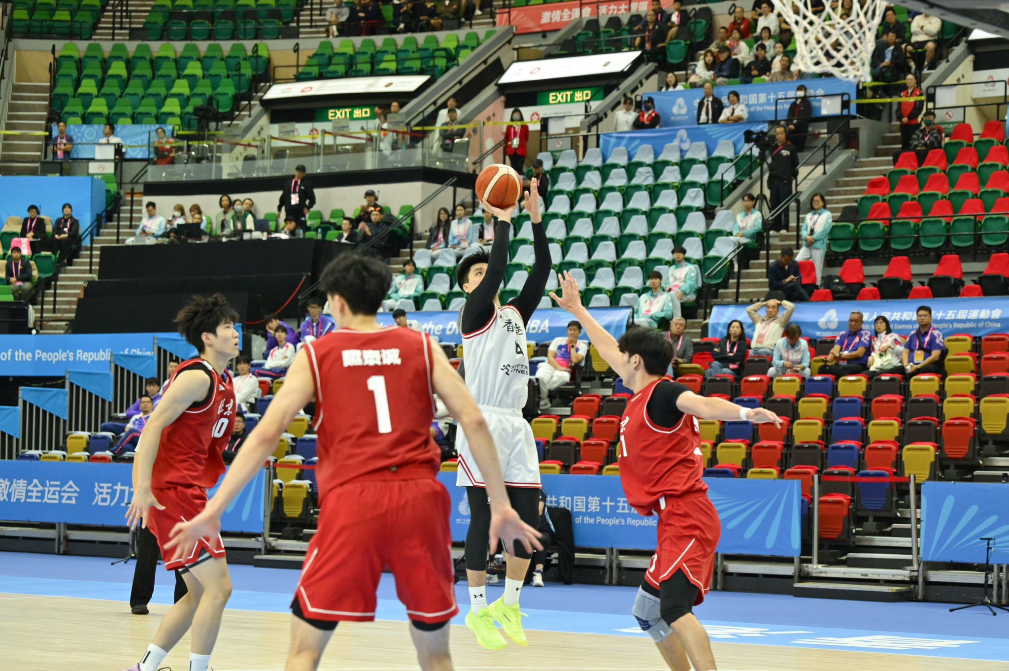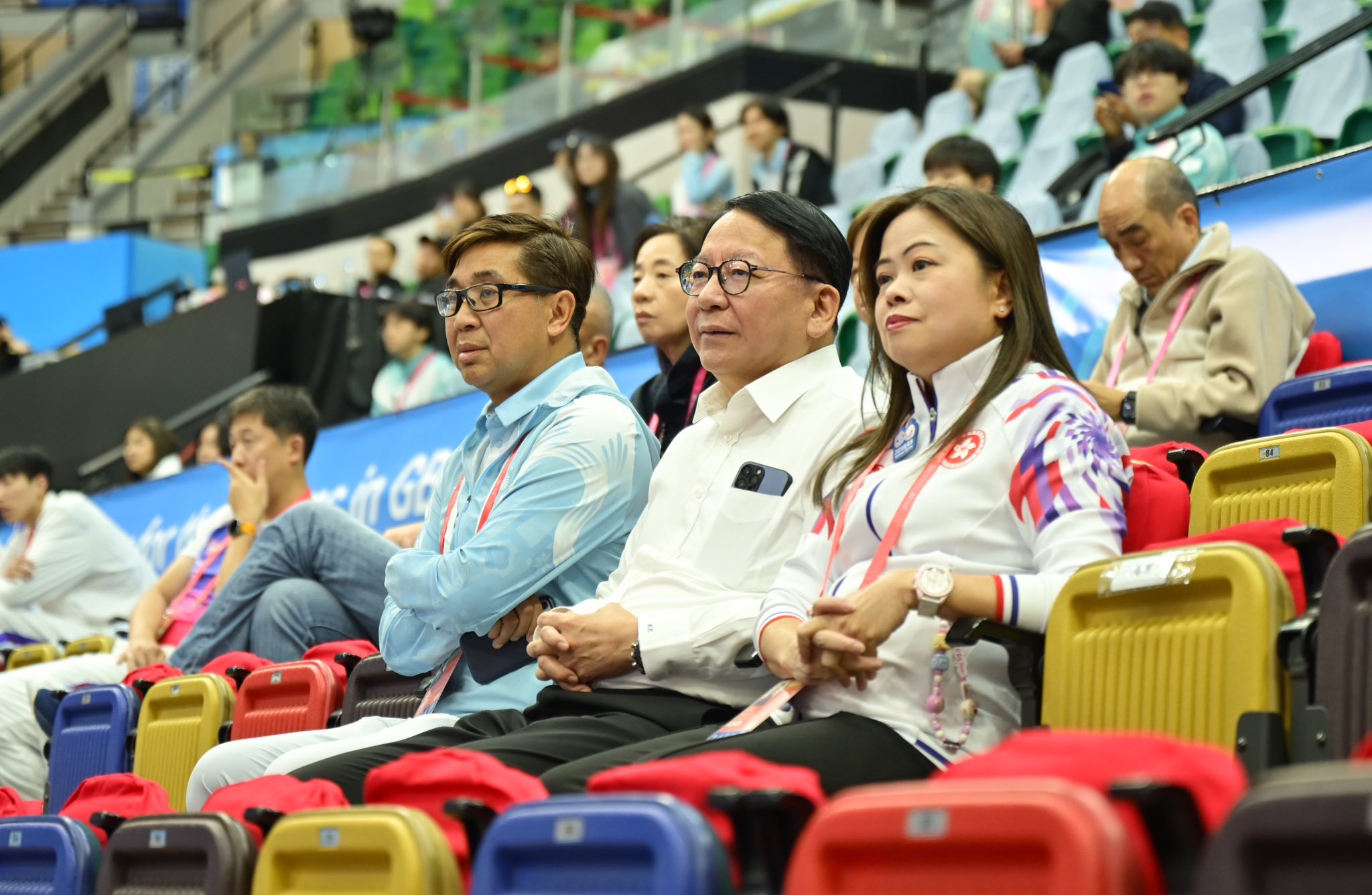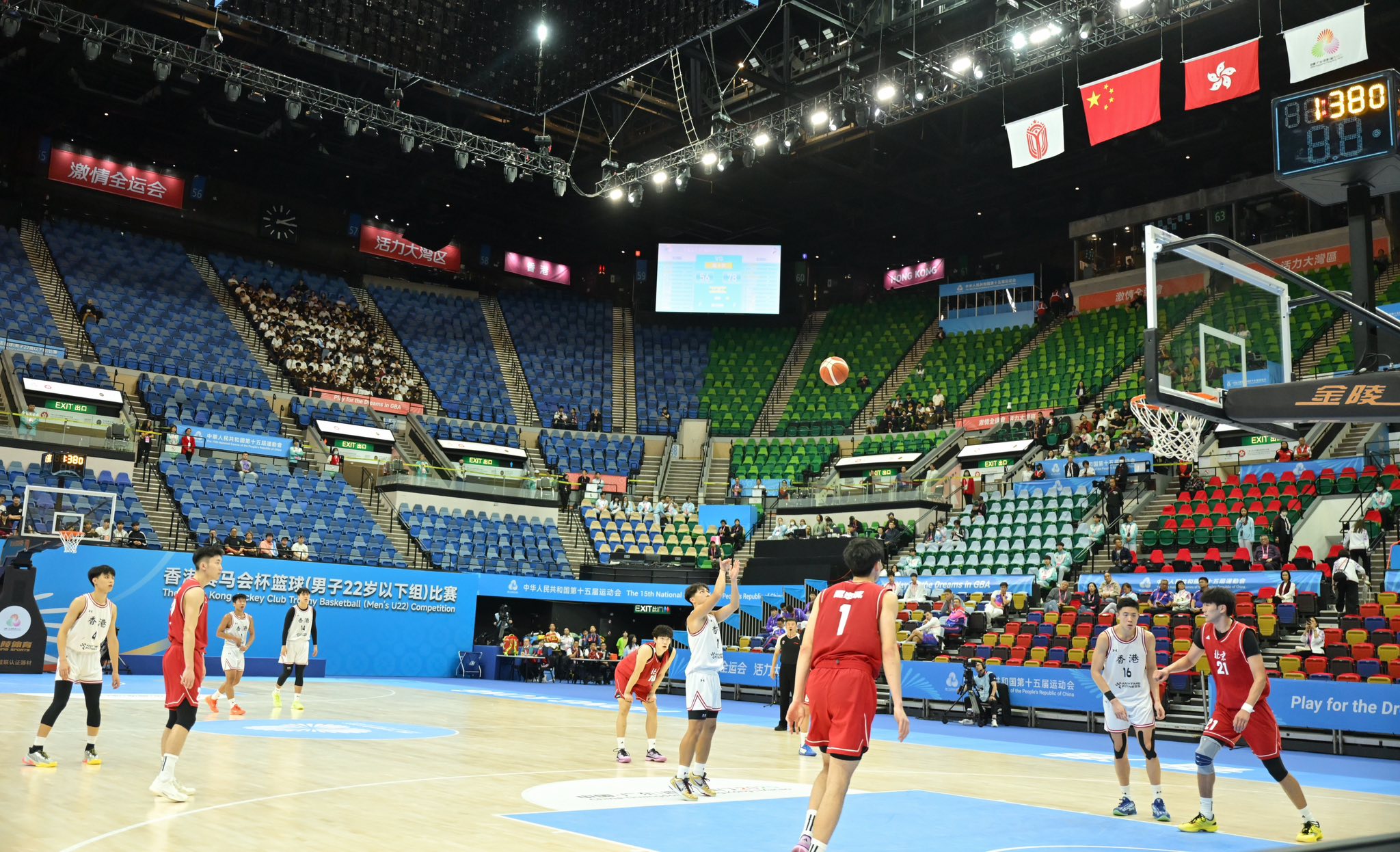 大公文匯全媒體報道,第十五屆全運會賽事正在粵港澳三地多個城市精彩上演,吸引了眾多體育迷、市民和遊客踴躍參與。政務司司長陳國基今日(13日)下午到香港體育館,與文化體育及旅遊局局長羅淑佩一起觀看全運會籃球(男子22歲以下組)的賽事,與全場球迷一起為香港和北京隊加油打氣。