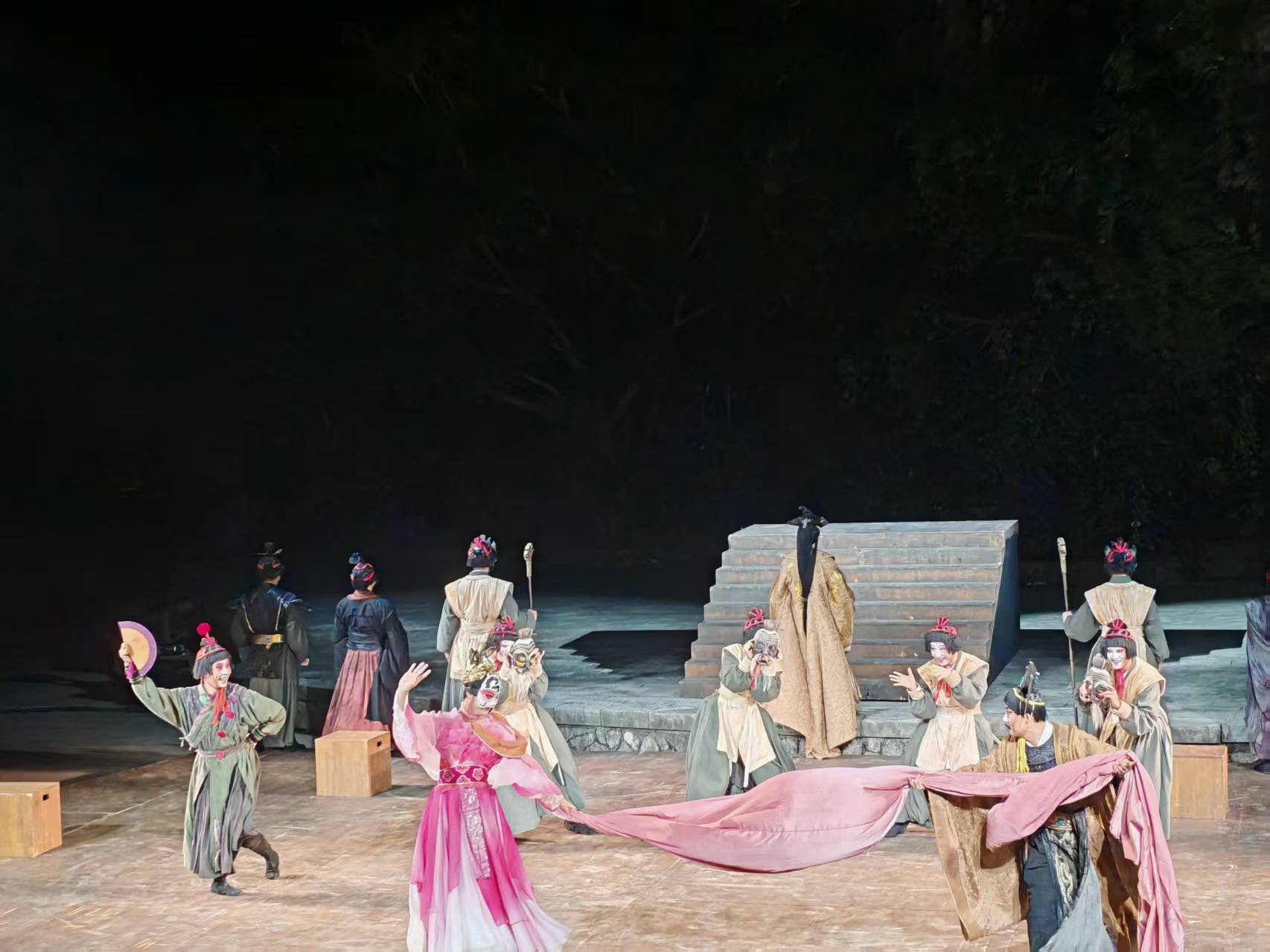 紅綢與秋風共舞,光影與山壁相映。10月24日至11月2日,2025第四屆桂林藝術節在桂林舉行。中國國家話劇院帶來的話劇《蘭陵王》在山劇場上演,帶你穿越千年歷史,探索人性與面具的哲學寓言。由著名劇作家羅懷臻編劇,著名導演王曉鷹執導的話劇《蘭陵王》,那個帶上面具是戰神、摘下面具是凡人的蘭陵王,引發了觀眾對現實生活的深刻思考。