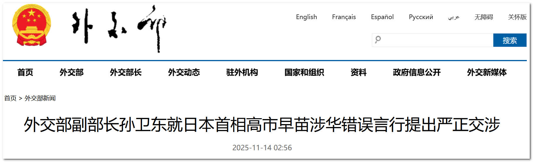 此前,外交部已兩次回應高市早苗在國會辯論的涉台露骨挑釁言論。