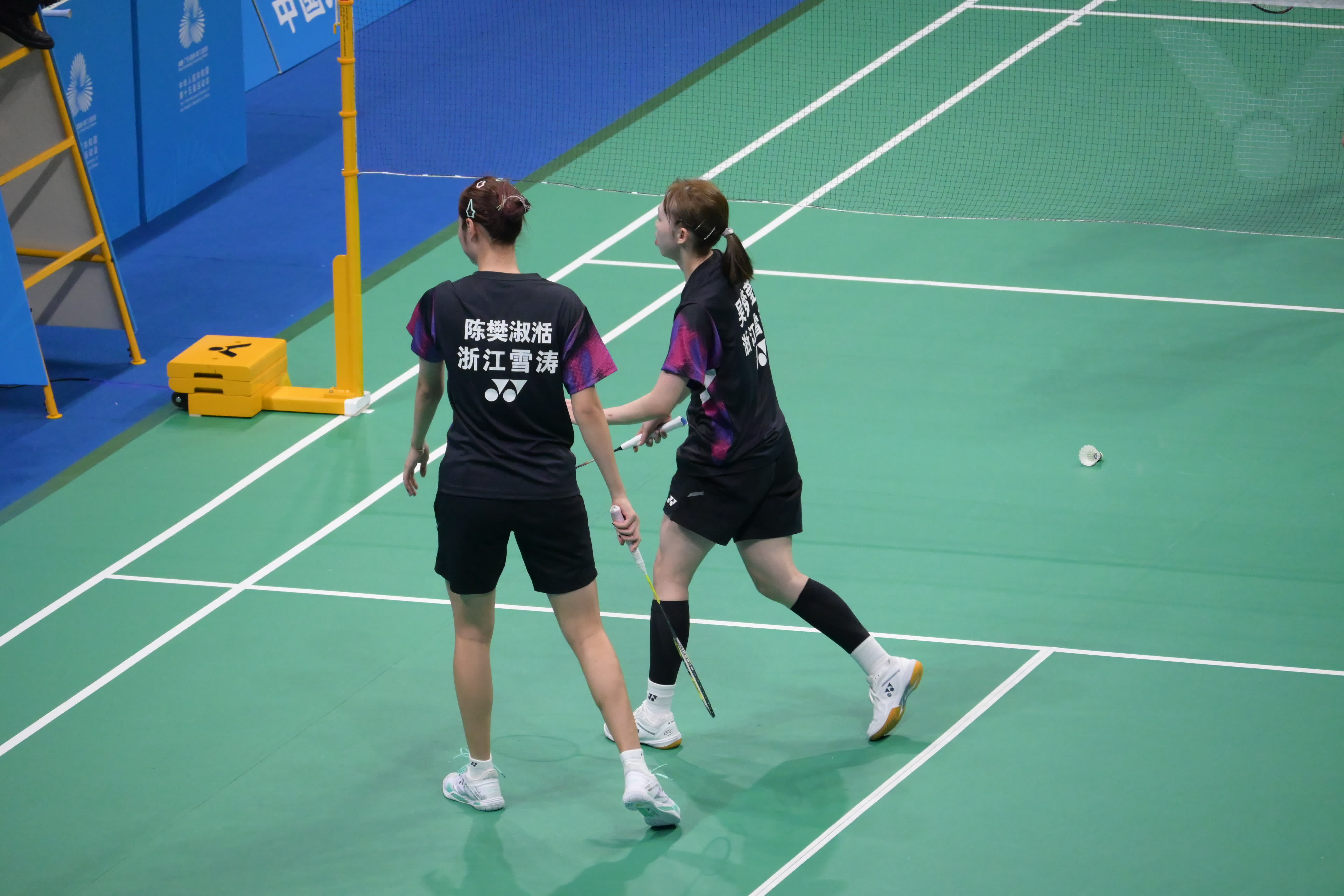 第二場雙打,浙江隊延續氣勢。陳樊淑湉/吳夢瑩頂住壓力,以21:19、21:16力克江蘇隊兼項出戰的何冰嬌/鮑驪婧,再下一城。