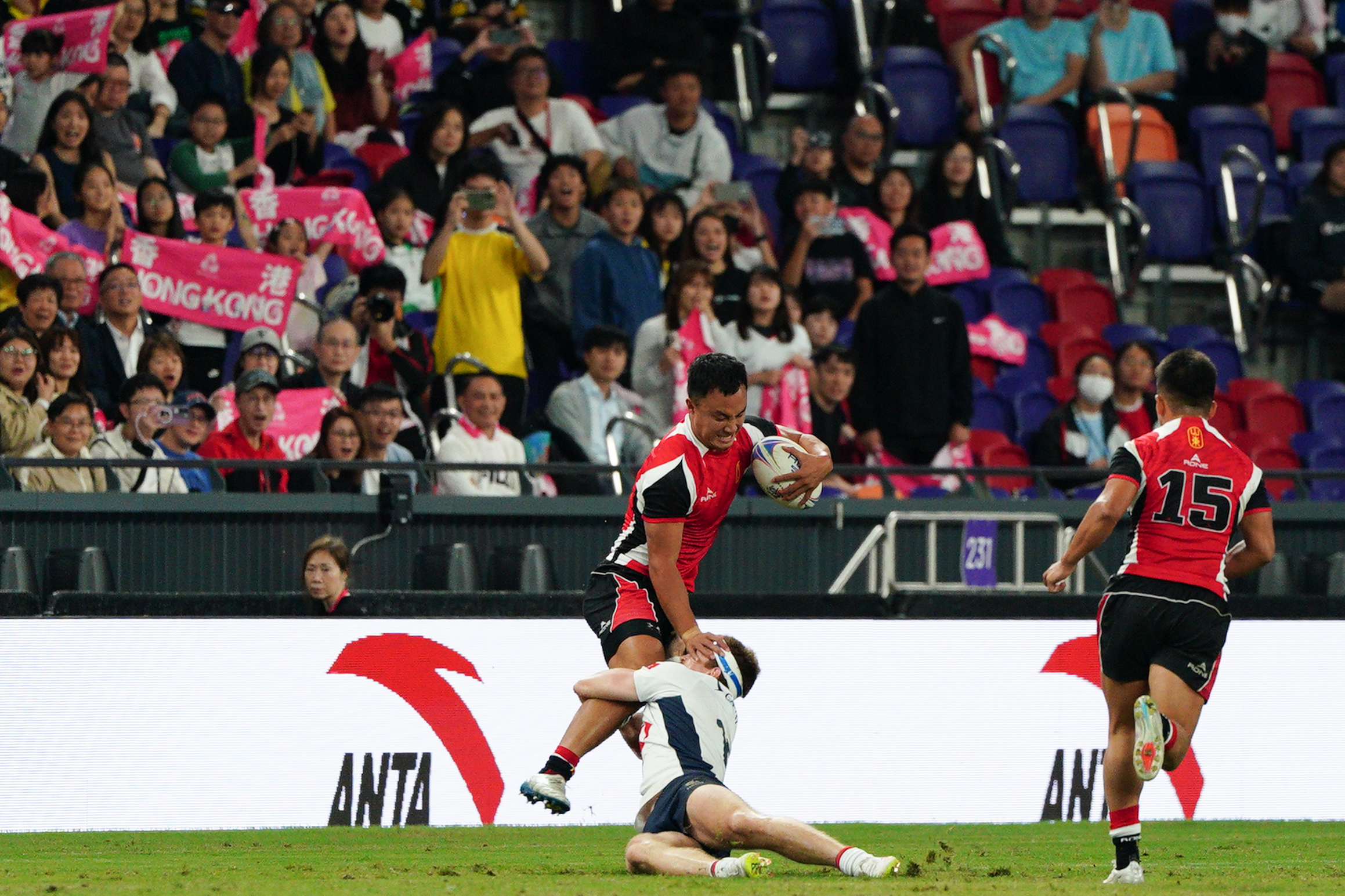 港隊在小組賽首戰即碰過山東隊,當時以24∶12取勝。今晚再戰,港隊開局3分鐘即先拔頭籌,華將房傑鋒率先達陣建功,其後再有靴貝特及拜恩菲立斯追加罰球,之後山東隊歲由劉魯達達陣及罰球,港隊仍以12∶7領銜結束上半場。