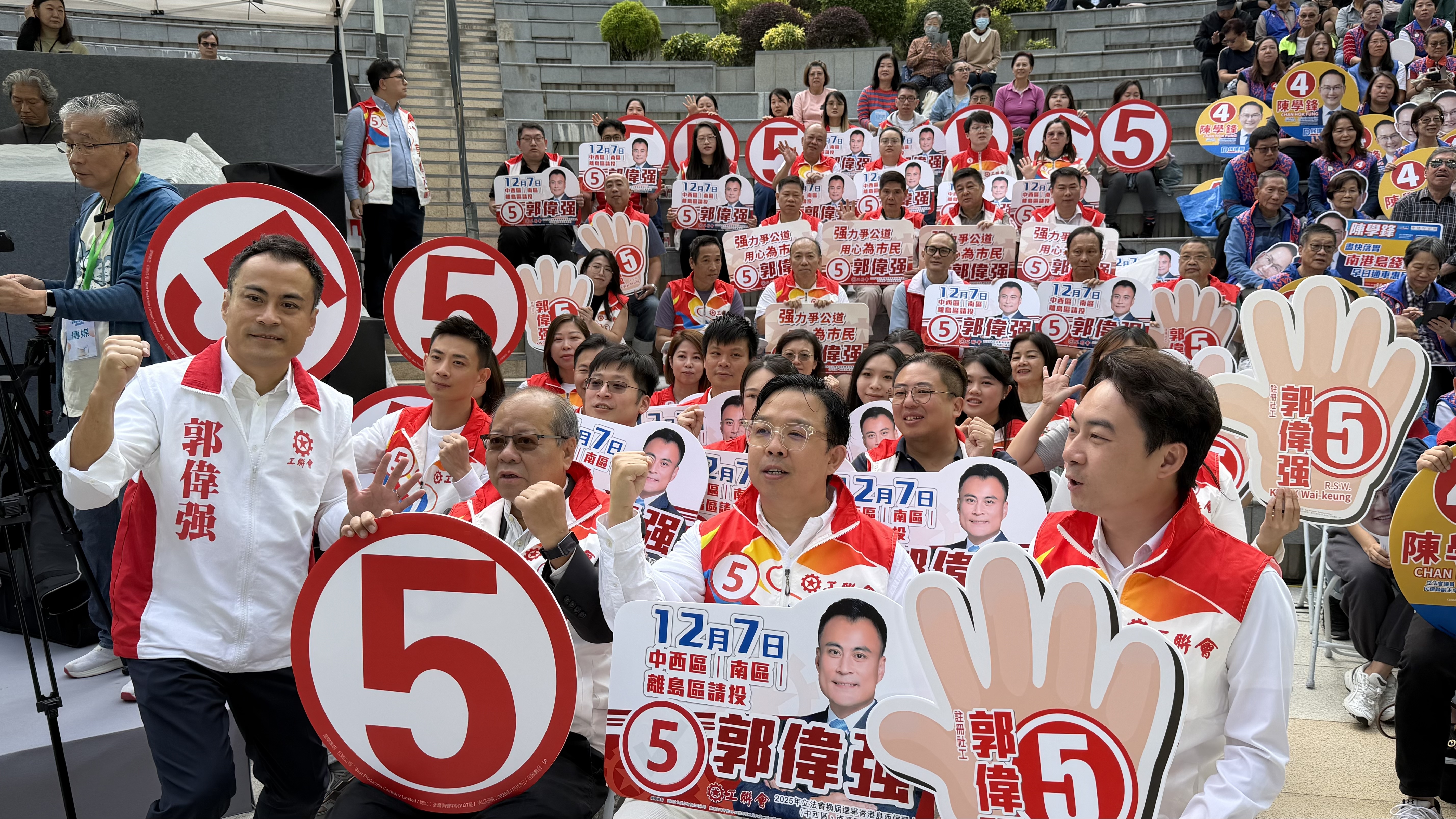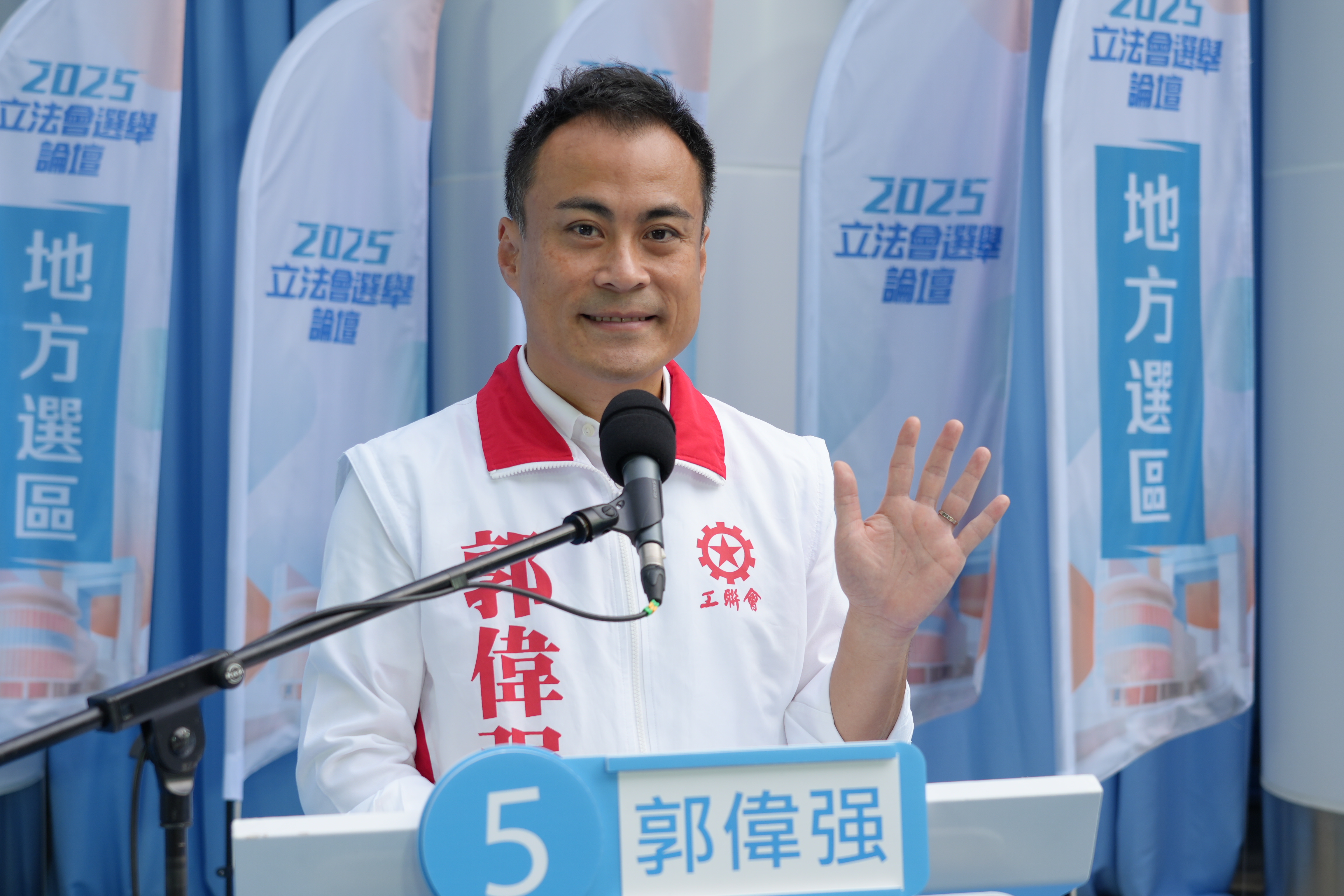 5號候選人現任立法會議員、工聯會成員郭偉强表示,他堅持投身愛國建制派,參選區議會,多年來堅決反「拉布」和支持止暴制亂。作為候選人中唯一的註冊社工,他指自己具備強大同理心接觸基層及聆聽每個階層意見。他表示,未來會繼續在立法會關注過勞現象,關注外送員基本保障,為保障僱員職安和權益發聲。