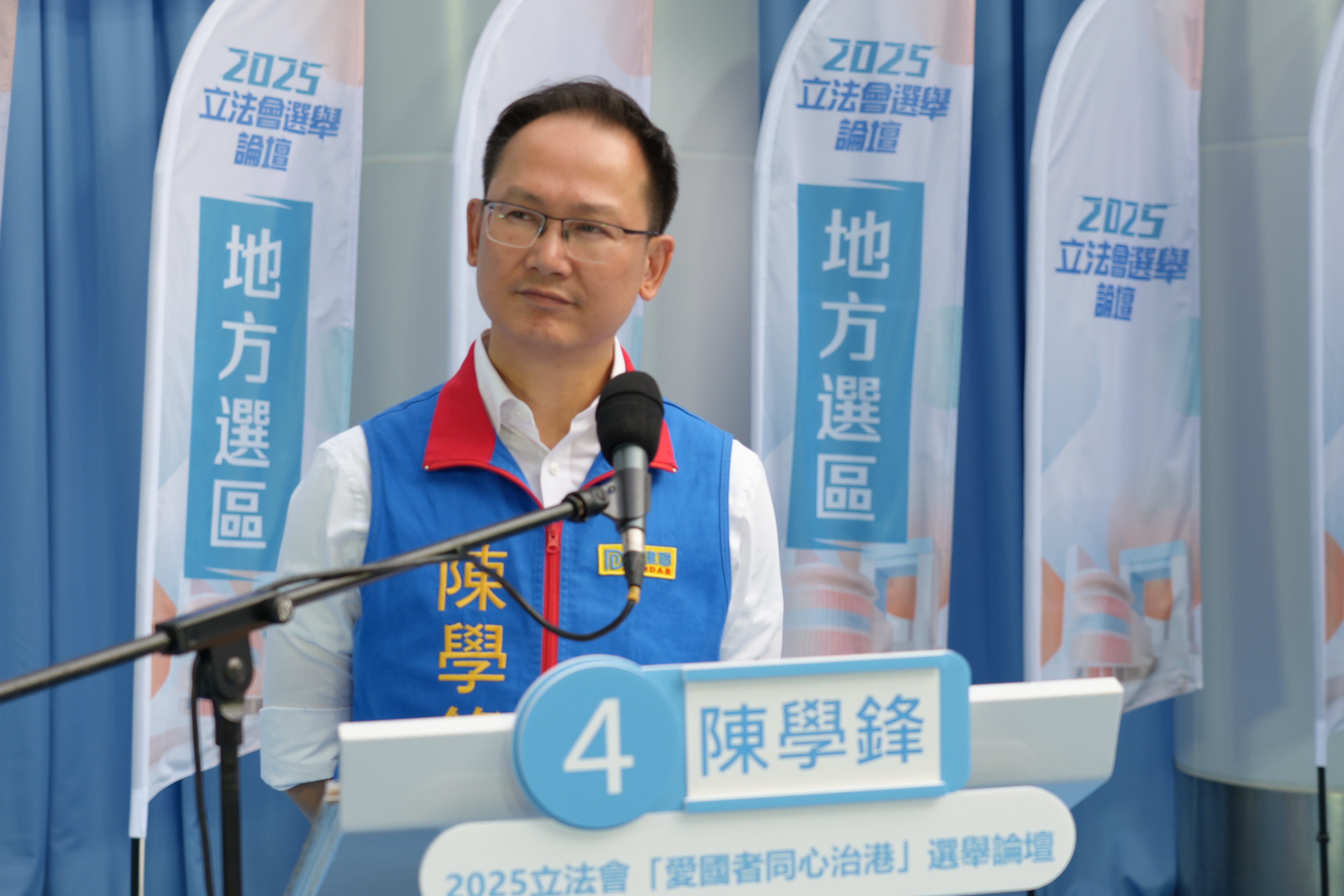 4號候選人港島西立法會議員、民建聯副主席陳學鋒表示,過去26年,自己從議員助理、區議員到如今的立法會議員,始終不忘這份工作帶來的滿足感,能真正幫助市民。他表示,未來將繼續推動租置計劃、海濱長廊及樓宇更新大行動,令市民生活越來越好。