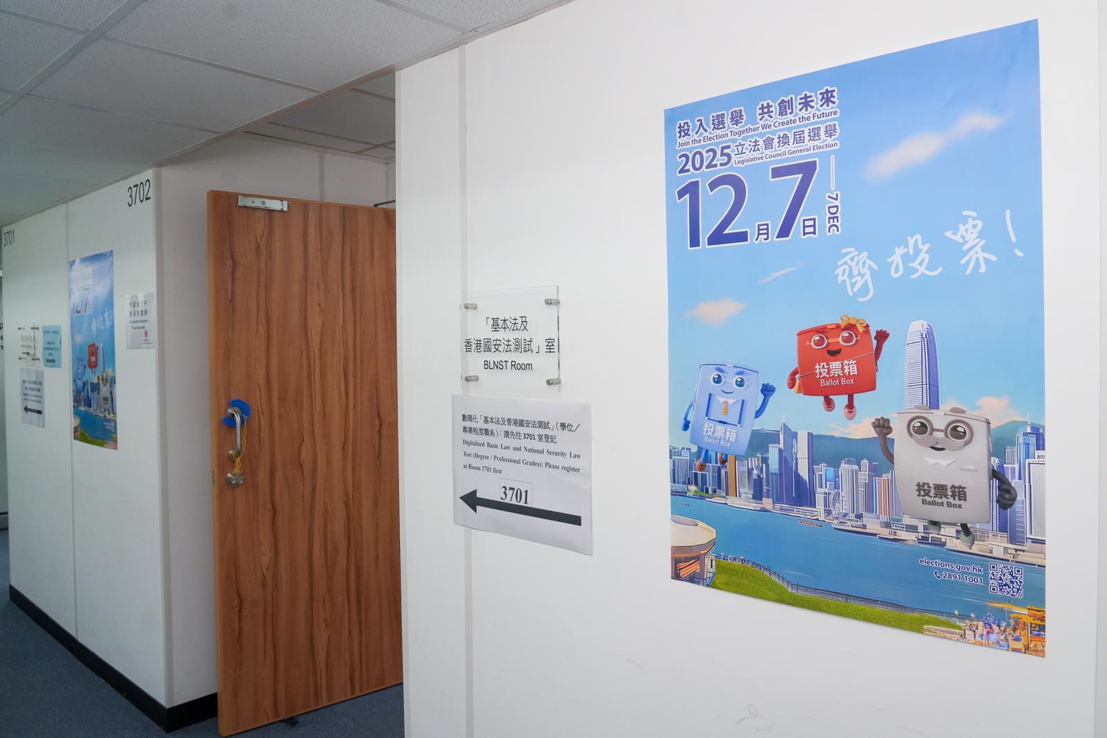 在過去一段時間,公務員事務局全力推動公務員在12月7日立法會選舉齊投票外,亦有不少面向公眾的齊投票宣傳呼籲。我們最新措施是在公務員事務局一般職系處招聘中心,向參與數碼化《基本法及香港國安法》測試的考生,及接受技能測驗的考生,作出12.7齊投票的號召。