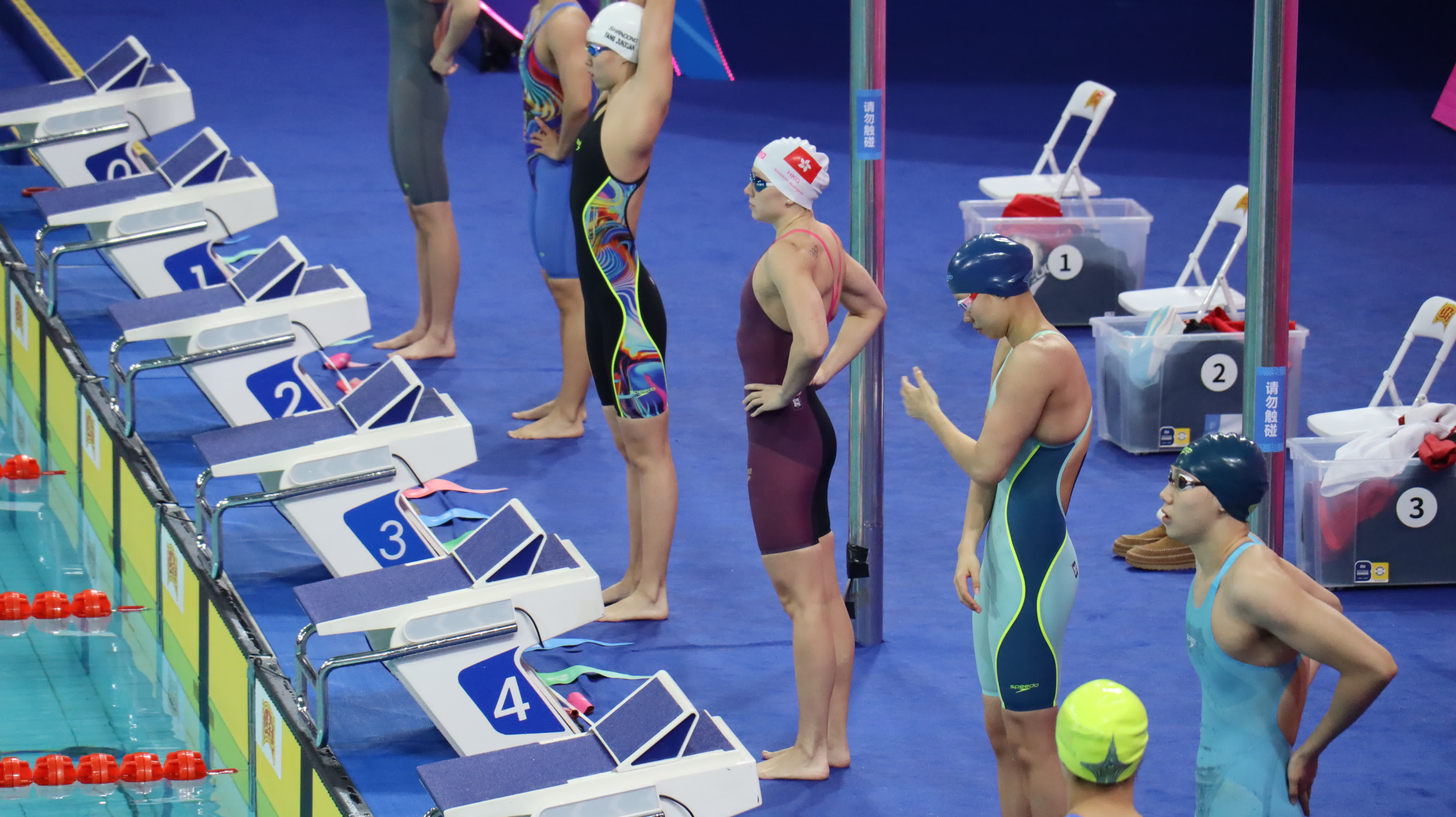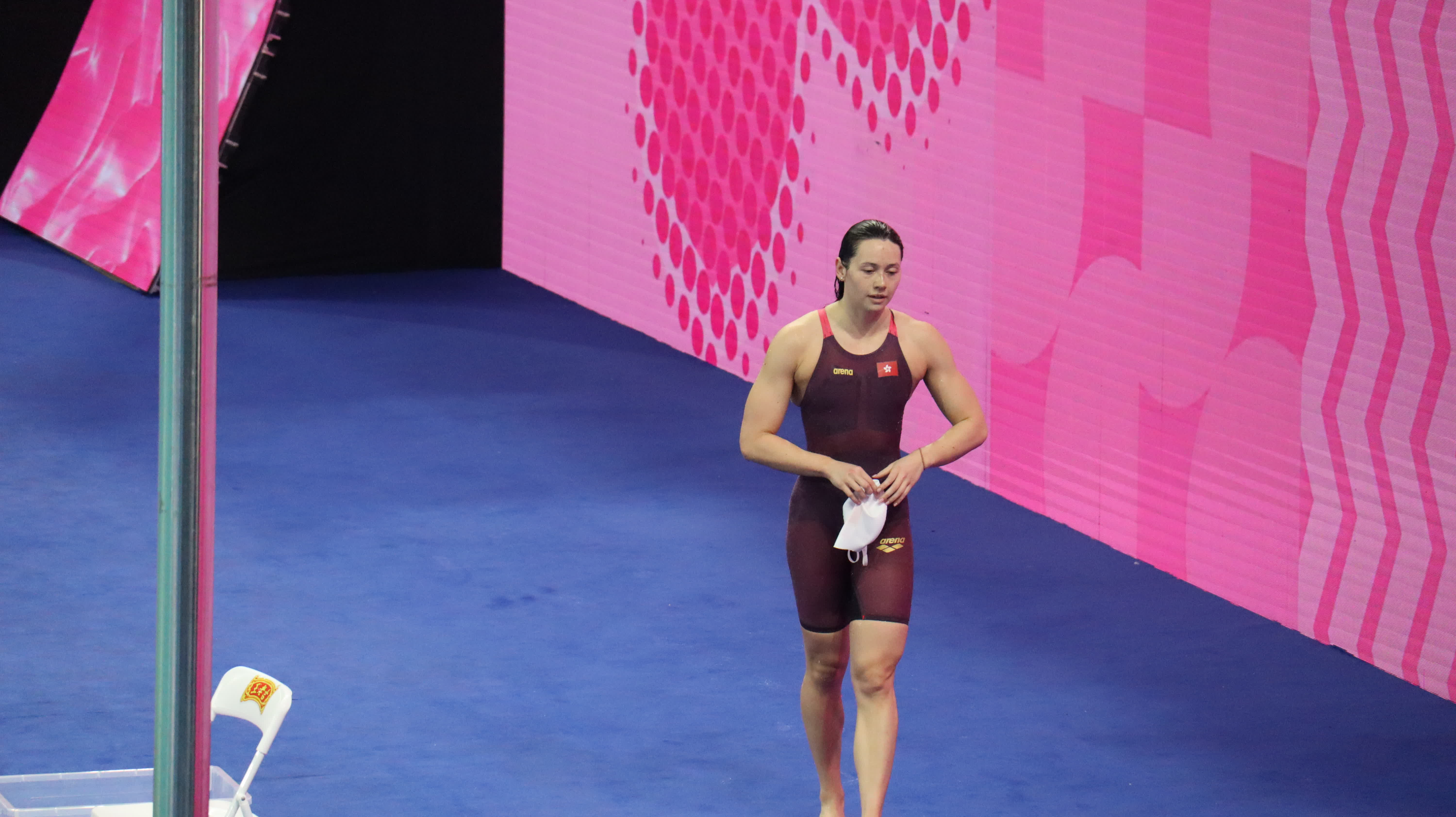 何詩蓓人氣很高,賽前一出場現場便歡呼聲四起。港隊成員一起觀戰,為何詩蓓加油助威。