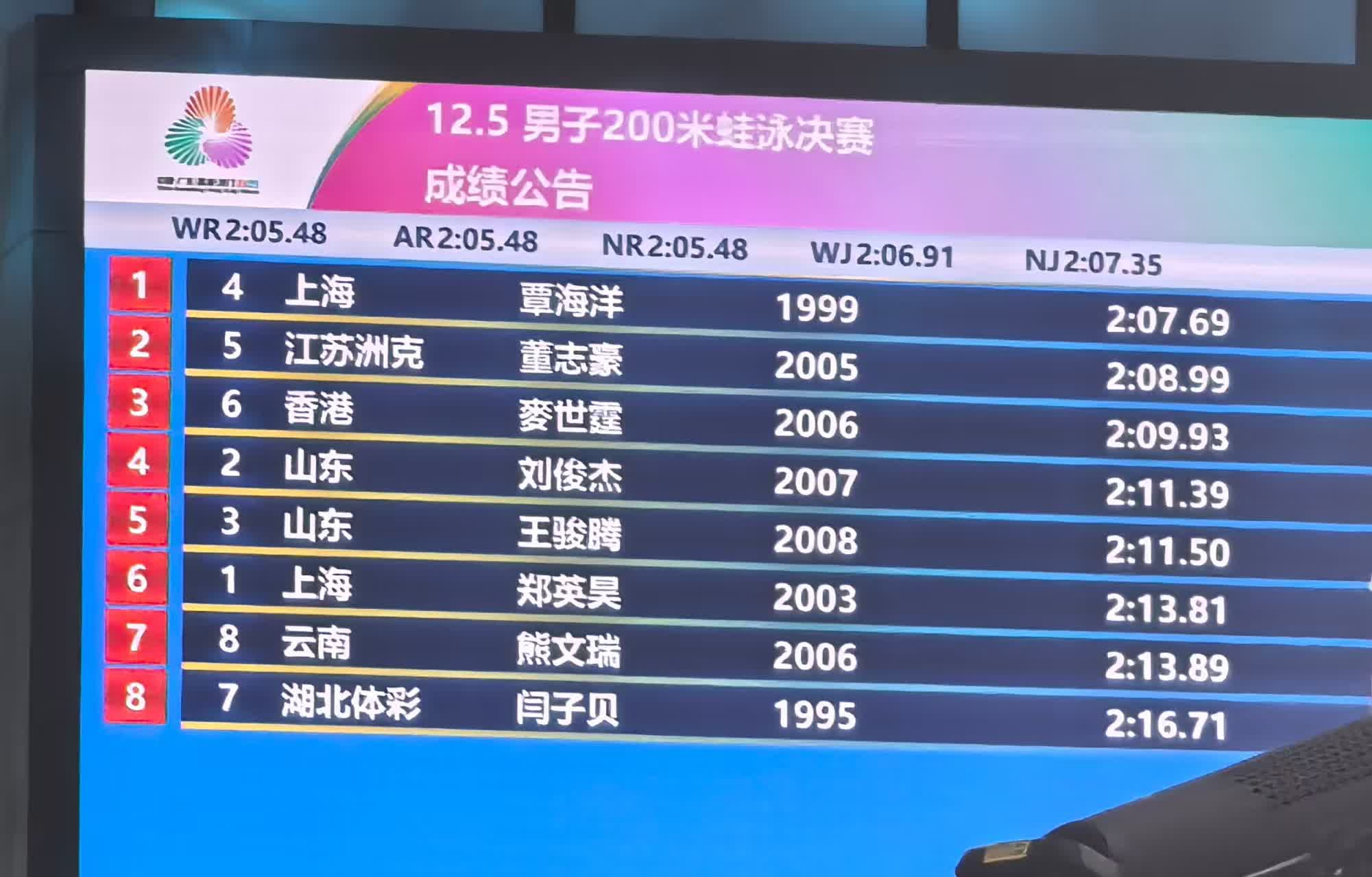 關鍵詞:麥世霆蛙泳銅牌