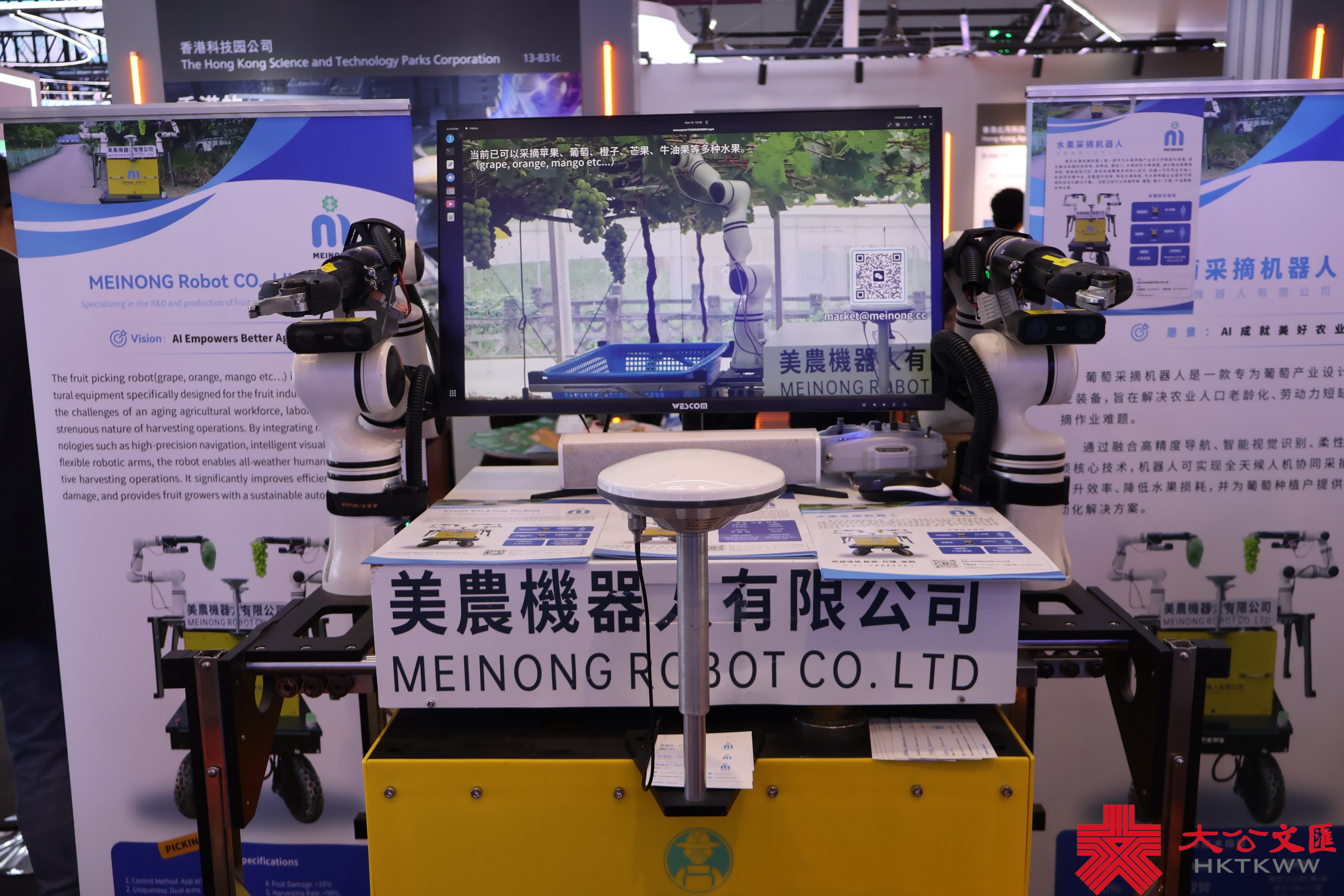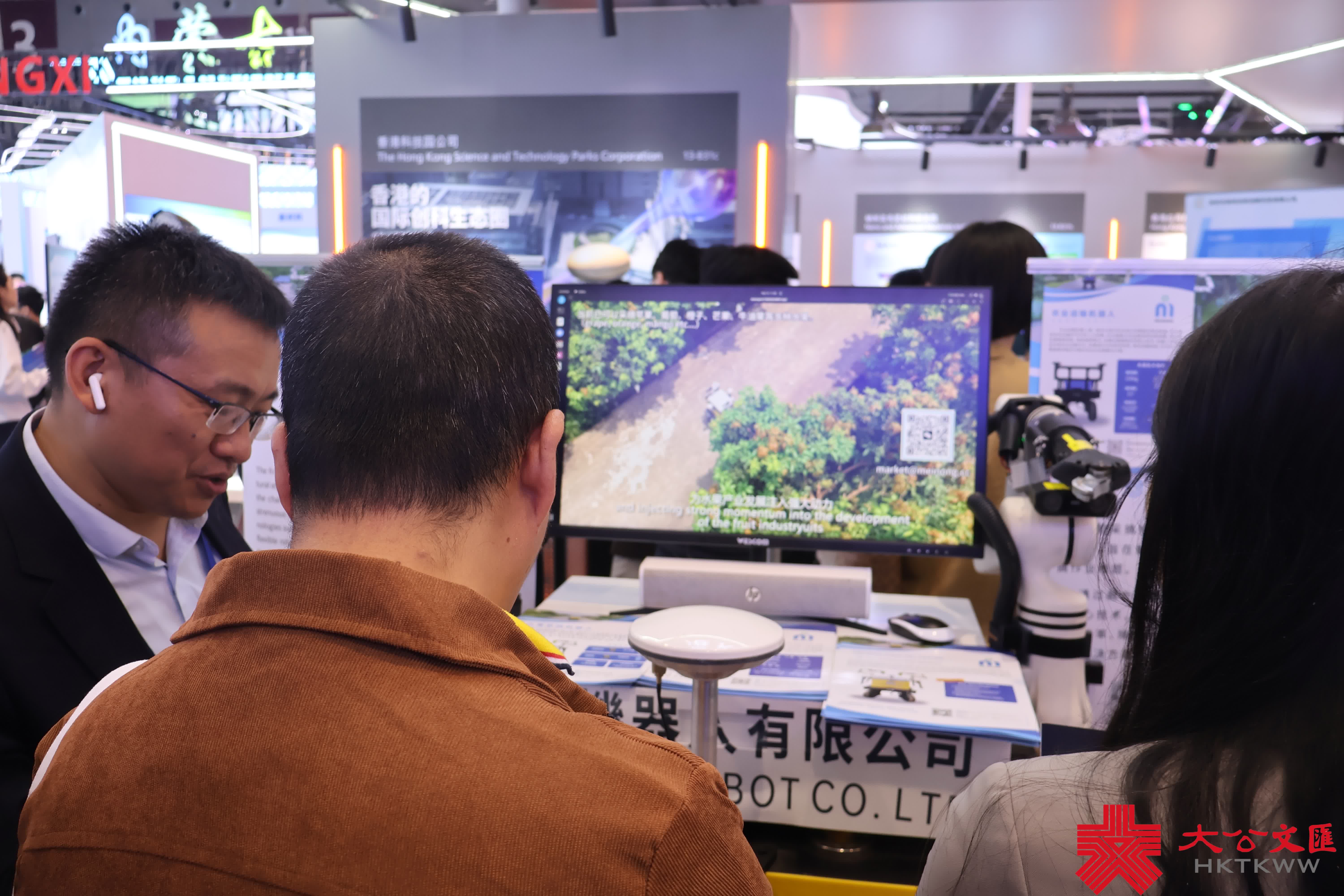 「實」還在於高交會的實效。首次參展的香港企業不止於「亮相」,更多在於推介產品。香港美農機器人公司一款產品吸引不少人駐足了解。香港美農帶來的水果採摘機器人通過融合高精度導航、智能識別水果表皮、柔性機械臂操作等技術,實現全天候人機協同採摘作業。該機器人最大負載150KG,定位精度可達2至3cm,水果損耗降低很多。該展區工作人員稱,展出幾個小時來了解的人很多,也有一些有意向的客戶。已在各地參加過幾次推介會的他說,「一般產品是為了適應市場進行調整,我們的澳大利亞客戶願意按照水果採摘機器人採摘方式進行種植,因為他們實在找不到採摘的人了。」