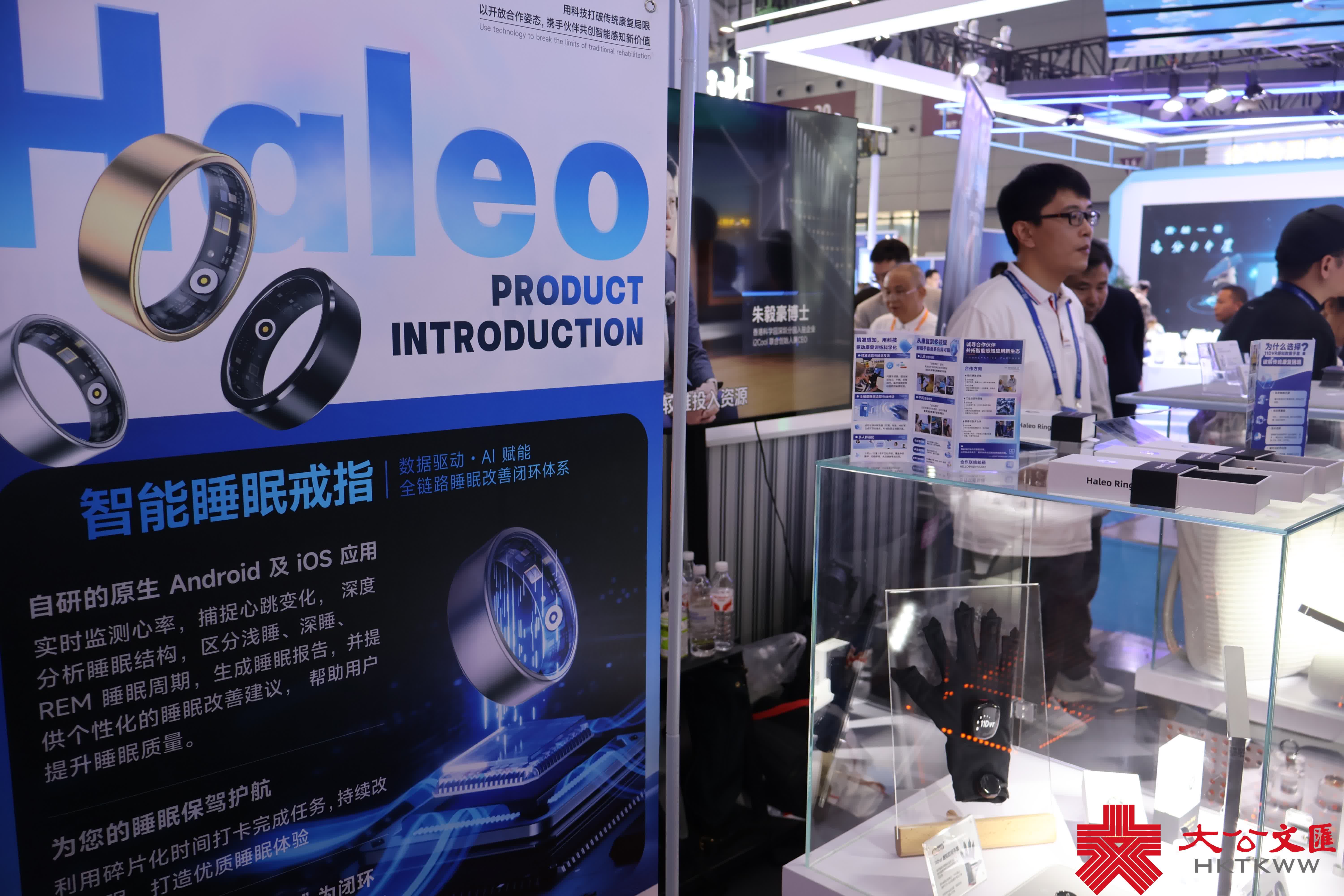 勵捷科技帶來了明星產品「智能睡眠戒指」,該戒指24小時檢測人體健康數據,通過智能大模型收集分析數據,實時提出改善生活方式建議。展區工作人員介紹,「與常見的智能手錶相比,該產品更小、更輕便,能更方便檢測自己的睡眠習慣。」