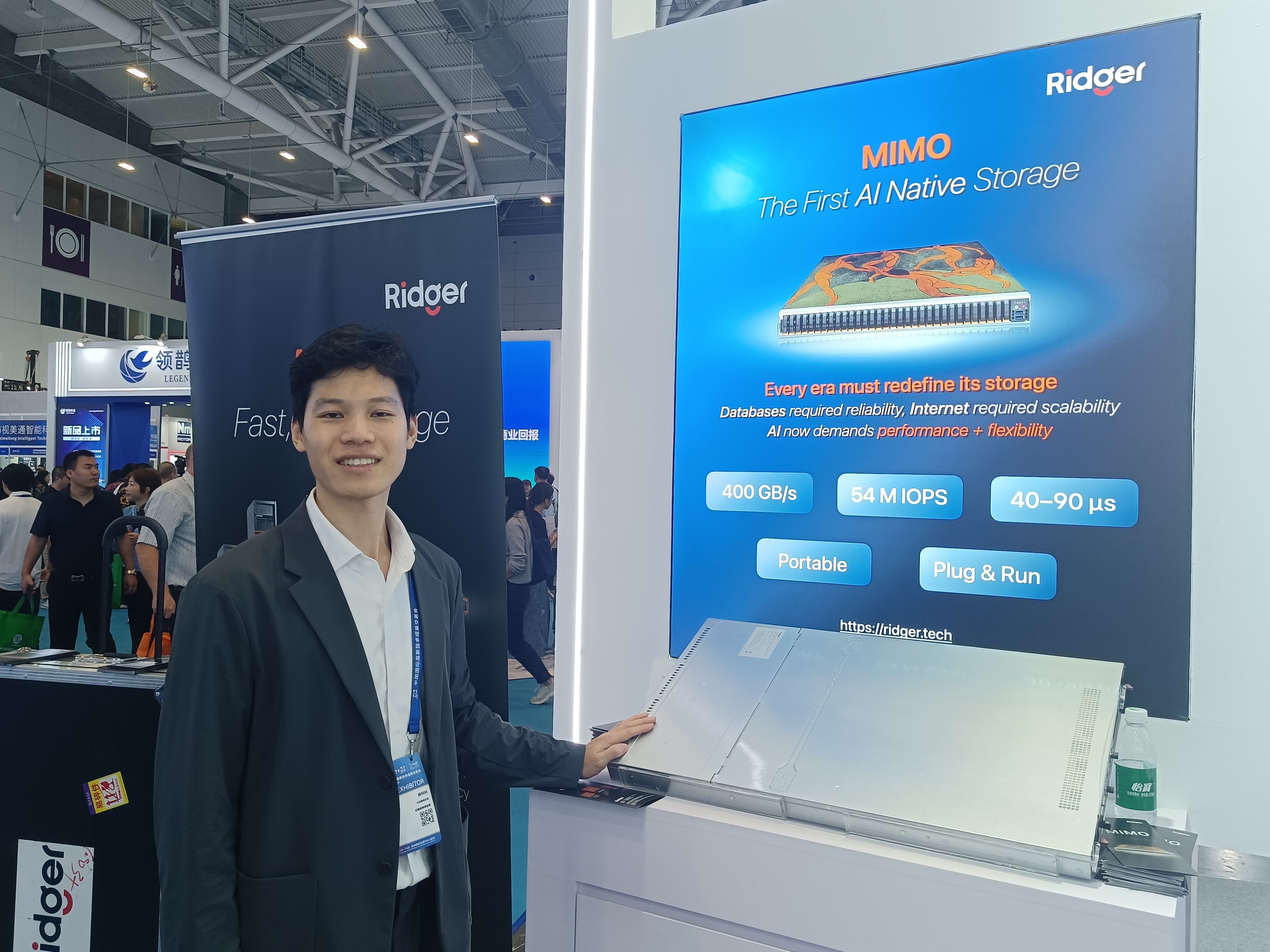 由香港企業Ridger研發的全球首款AI原生存儲系統吸引了許多人的目光,這是該企業在AI領域的又一重大突破。其創始人胡曉雷表示:「因內地人工智能蓬勃發展,機遇和潛力巨大,所以十分看好大灣區和內地市場機遇,因此首次特地來高交會展示,尋求大灣區戰略合作夥伴,運營內地業務,並藉機吸引國際客戶。此次是公司第二次參展,本月初剛在上海參加了進博會。」公司研發的AI原生存儲系統專為AI設計,從多個方面實現了性能的飛躍。過去,企業需要花費300萬才能滿足1000台服務器的數據供應需求,而現在使用該系統,只需十幾萬或小几十萬就能完全滿足,大幅降低了企業的硬件成本、耗能和空間成本。