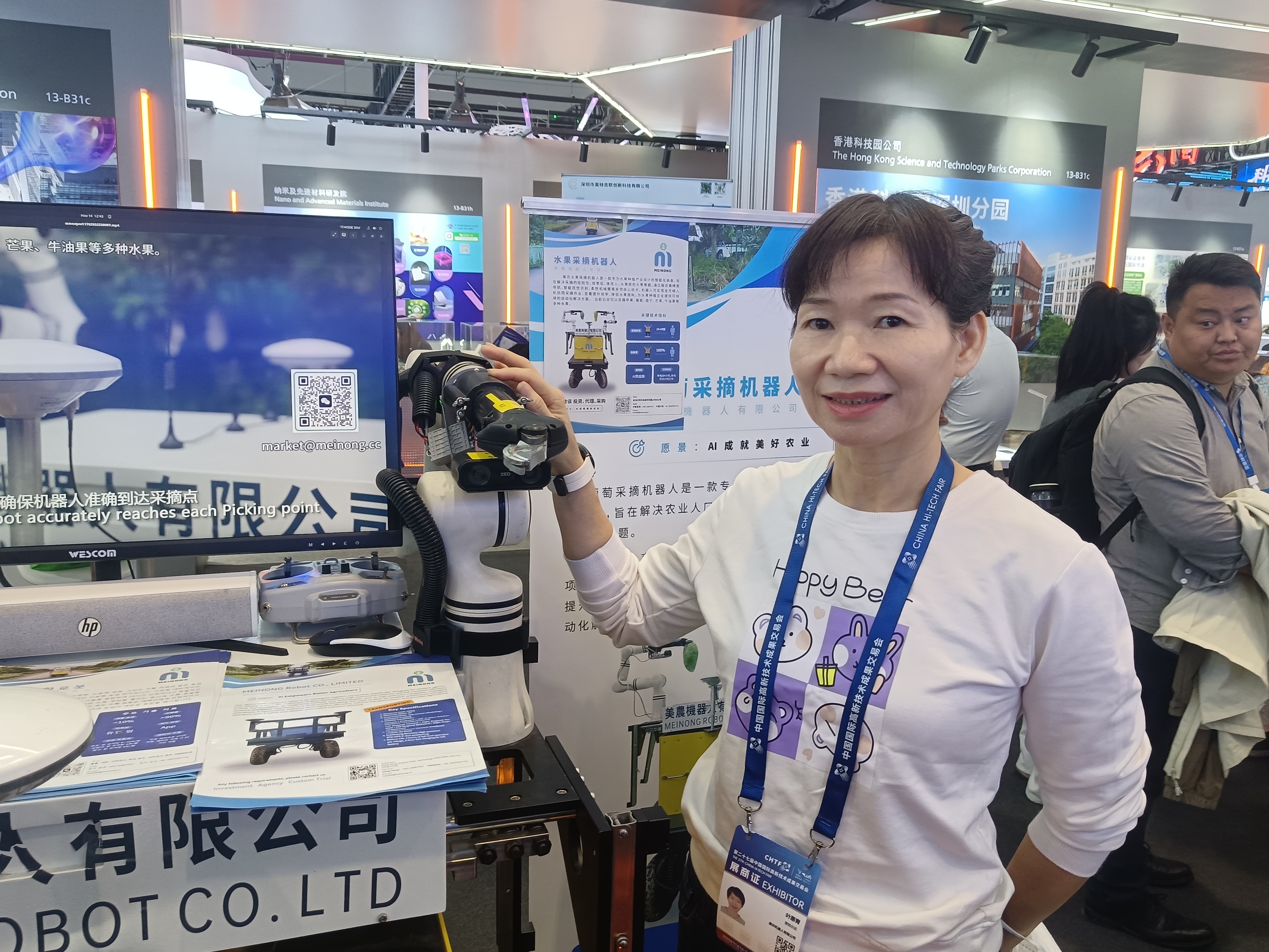 「我們機器人可以摘芒果、葡萄和蘋果等,一台機器人相當於20個人工,目前已獲得墨西哥、澳大利亞和內地山東、廣西等眾多客戶訂單和前來洽談。」港企美農機器人創始人、香港高才李德永在第27屆高交會不斷地向前來諮詢國內客戶講解。