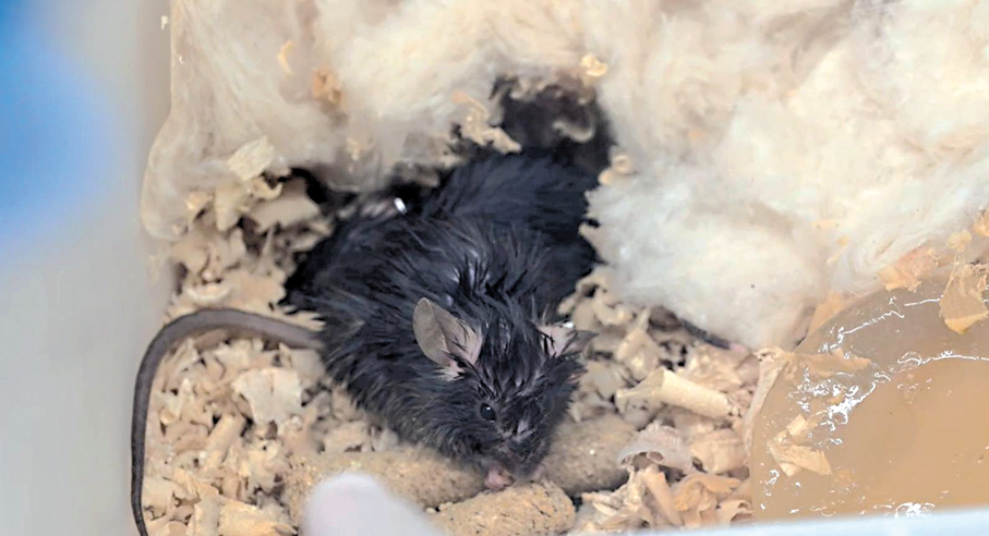 搭乘神舟二十一號飛船前往空間站的四隻太空小鼠,原定5天的太空之旅,因突發事件延期至14天。香港文匯報記者從中國科學院空間應用工程與技術中心發布的太空小鼠最新視頻觀察發現,「超期」太空出差的小鼠們正在適應地球的重力環境,牠們的外表看起來略顯「潦草」。工作人員將小鼠們放在鋪着柔軟墊材的實驗盒中,把牠們輕輕捧在掌心中撫摸,用耳溫槍測試體溫,還用小針管給牠們餵水。在工作人員的精心呵護下,幾隻小鼠也開始逐漸恢復活力,並主動啃食飼料。