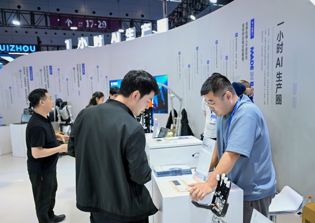 在「1小時AI生產圈」,製造效率被科技精準賦能。兆威機電的仿生靈巧手實時同步人手動作,演示精密操作;戴盟機器人的自研視觸覺傳感器吸引上下游企業洽談合作;同川科技的諧波減速器、正運動技術的多軸運動控制器等核心零部件集中亮相,將機器人「內核」拆解展示。「走完這一圈,就像親歷了一條濃縮的智能機器人產線。」有專業觀眾如此評價。