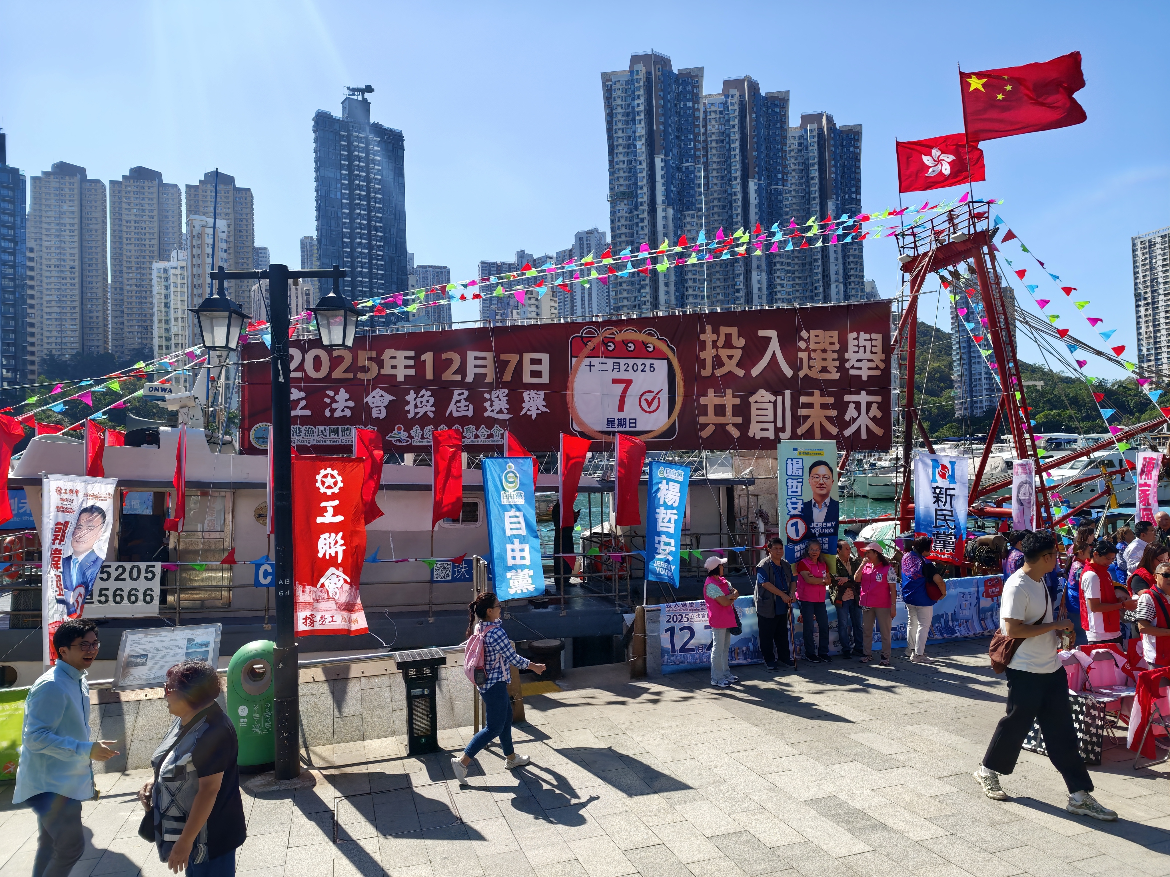 由香港南區各界聯會理事長陳南坡、香港南區婦女活動委員會主席林玉珍、香港南區工商業聯合總會創會主席廖漢輝、香港漁民團體聯會主席張少強以及全國政協委員周厚立為代表的南區主要社團負責人在現場表示,12月7日是立法會選舉投票的重要日子,他們呼籲市民踴躍投入選舉,共同建設更繁榮、更幸福的香港。