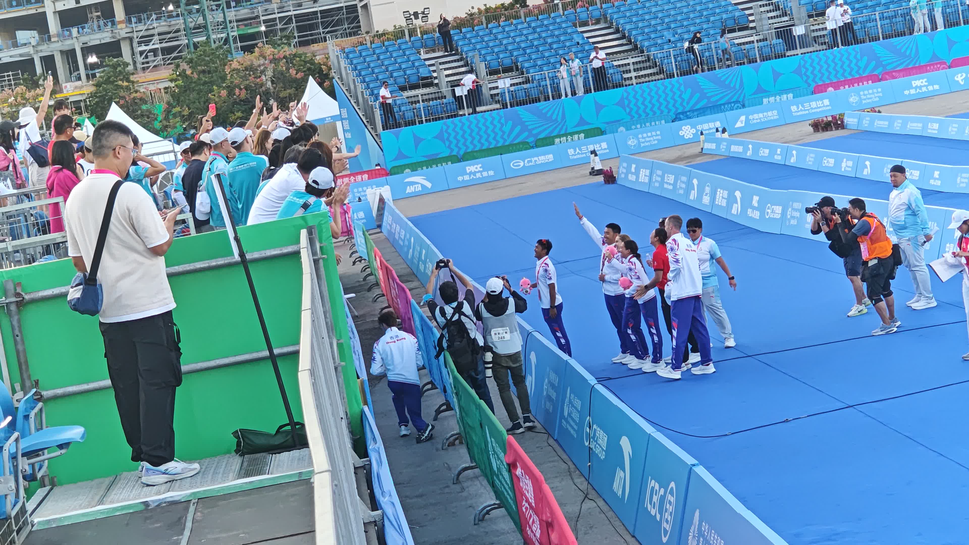 一連兩日的全運會鐵人三項賽事今日圓滿結束。在昨日的鐵人三項男子個人賽中,港將奧斯卡以1小時49分21秒的成績在比賽中勇奪銅牌,本屆全運港隊在三項鐵人項目共收獲一銀一銅。