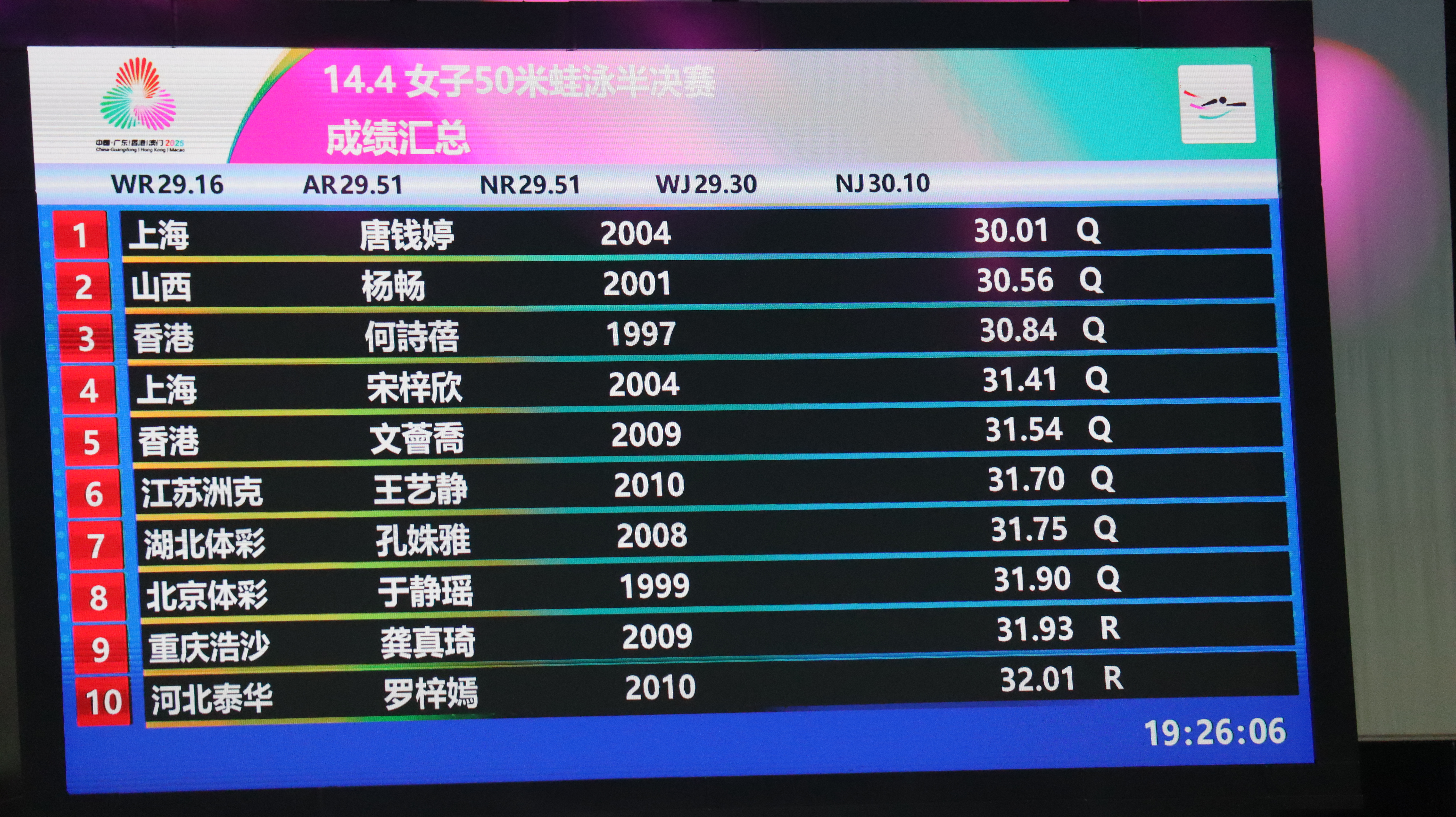 關鍵詞:全運會十五運會何詩蓓文薈喬蛙泳