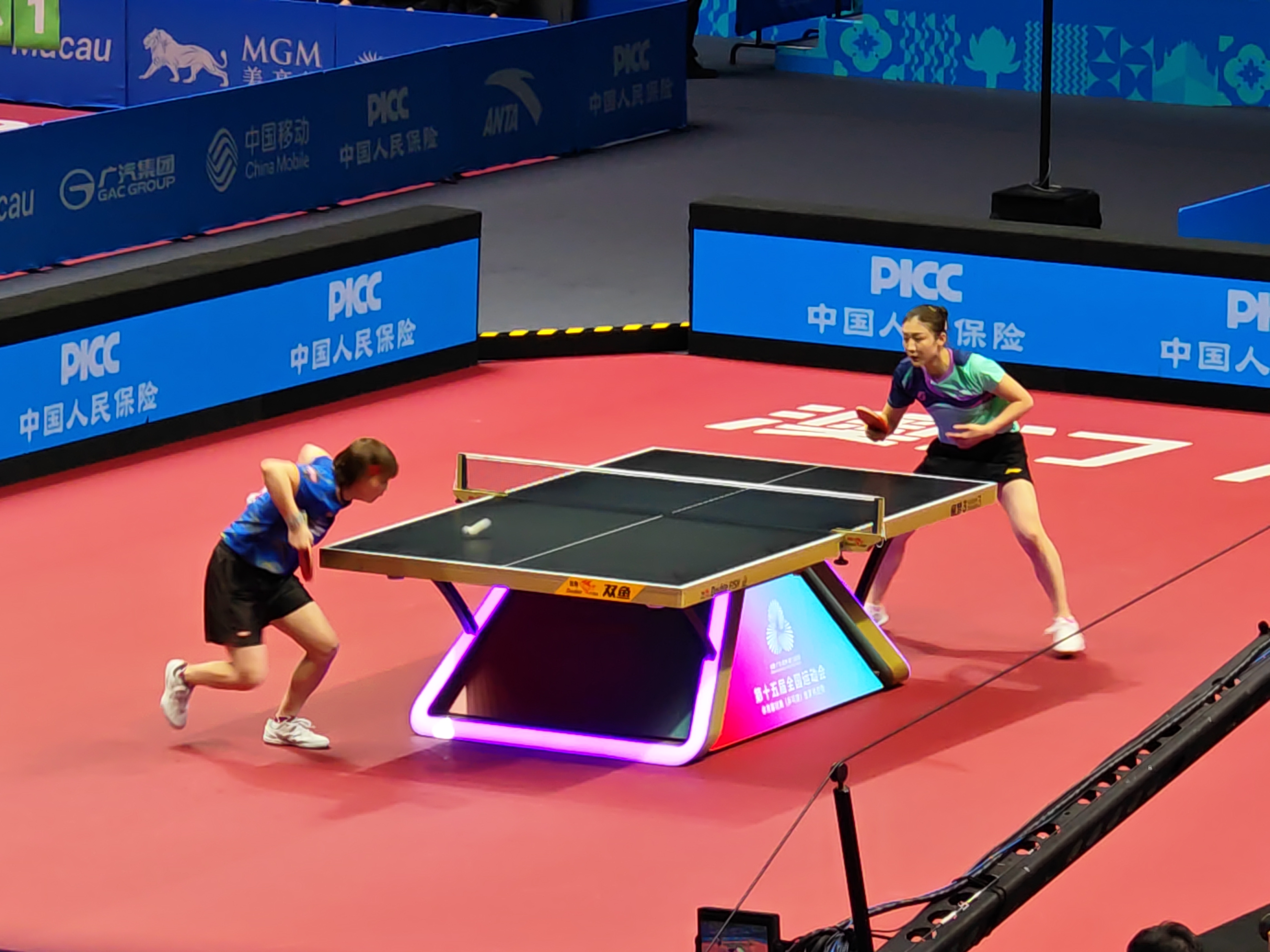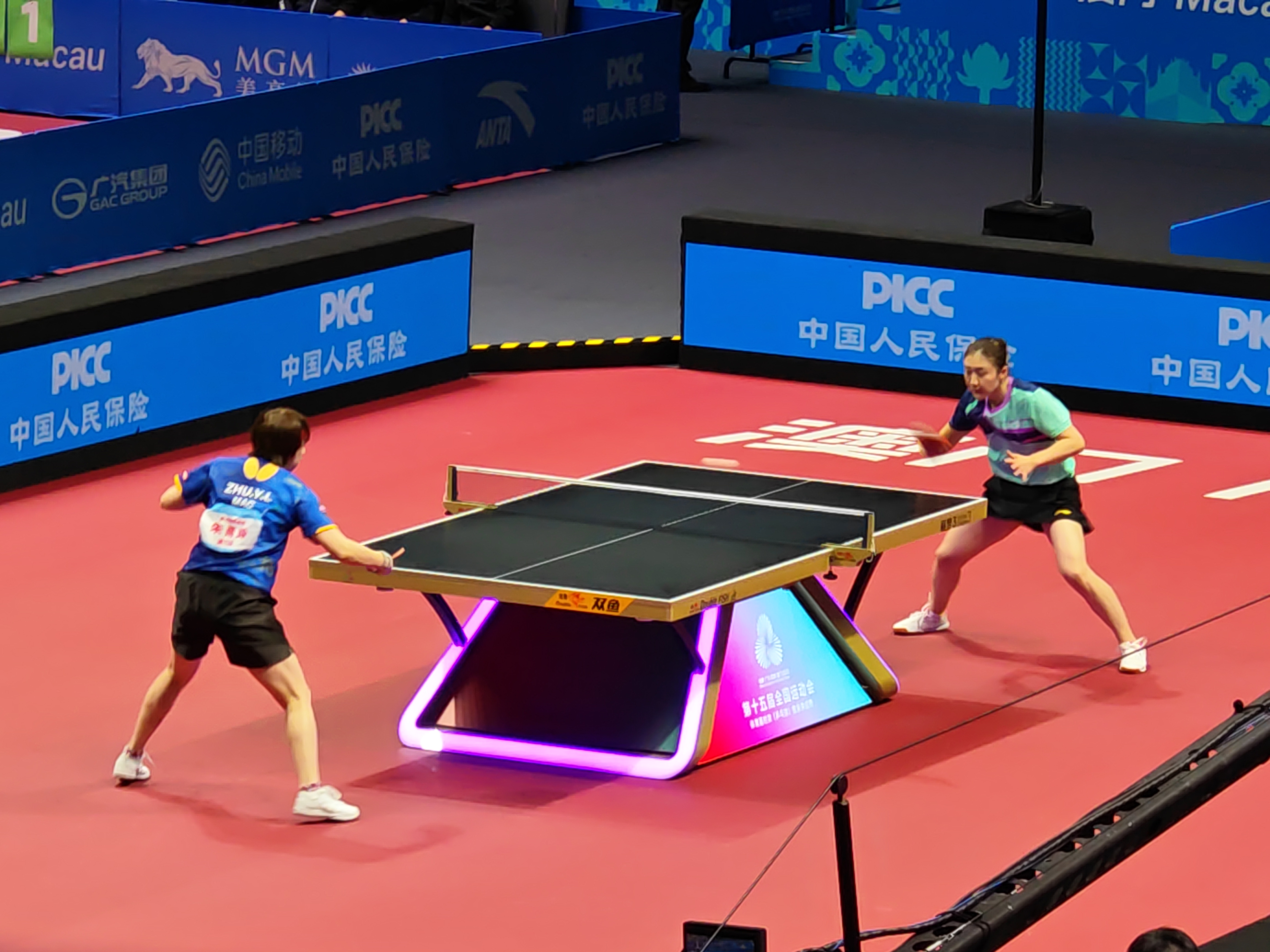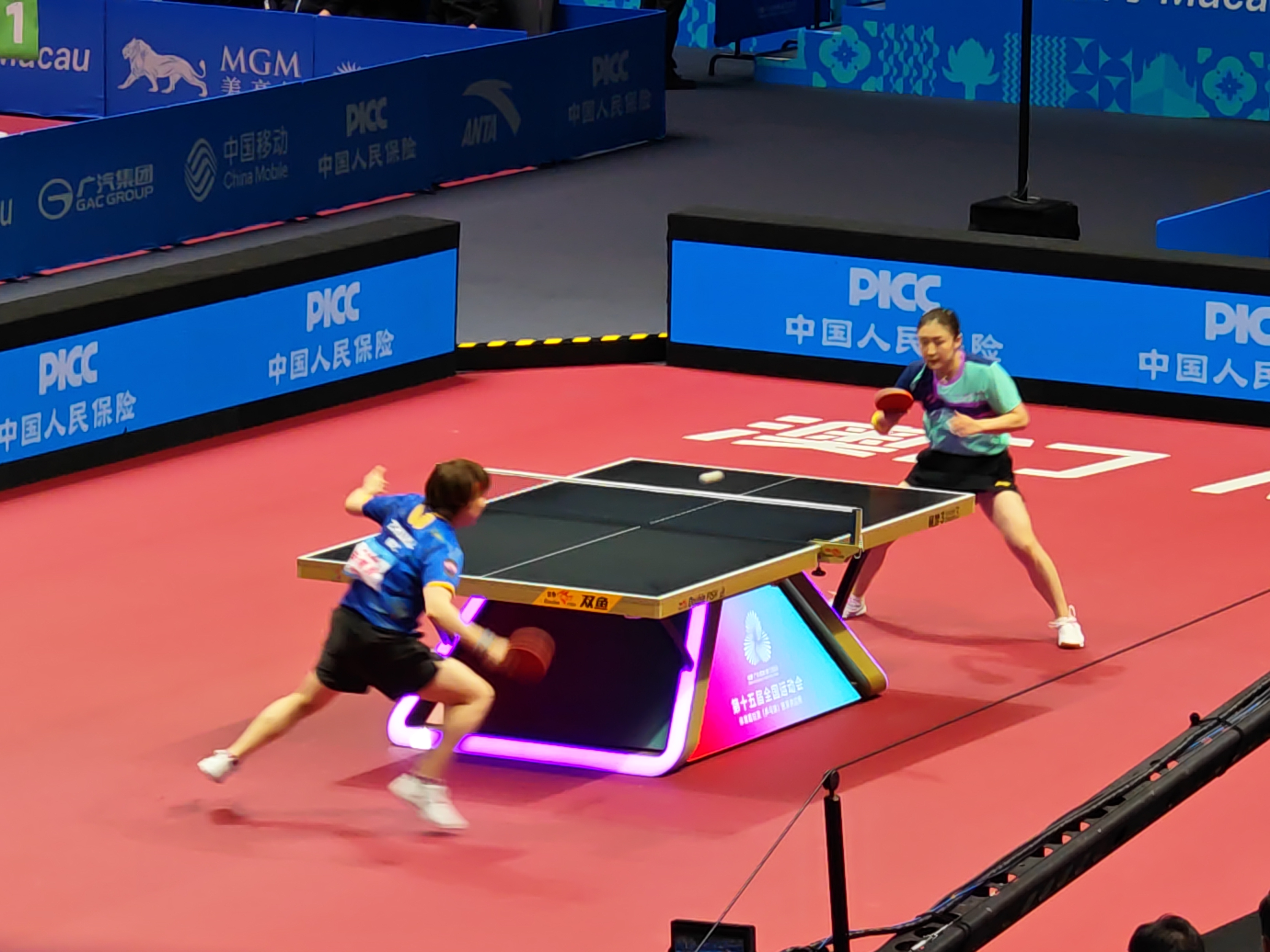 大公文匯全媒體報道,第十五屆全運會今日(16日)進行乒乓球女子單打決賽,銅牌爭奪賽於晚上8時半開始,由澳門隊、前「世一」朱雨玲對陣山東隊、巴黎奧運會女單冠軍陳夢,重磅賽事吸引一眾球迷到場觀看,現場氣氛十分火熱。