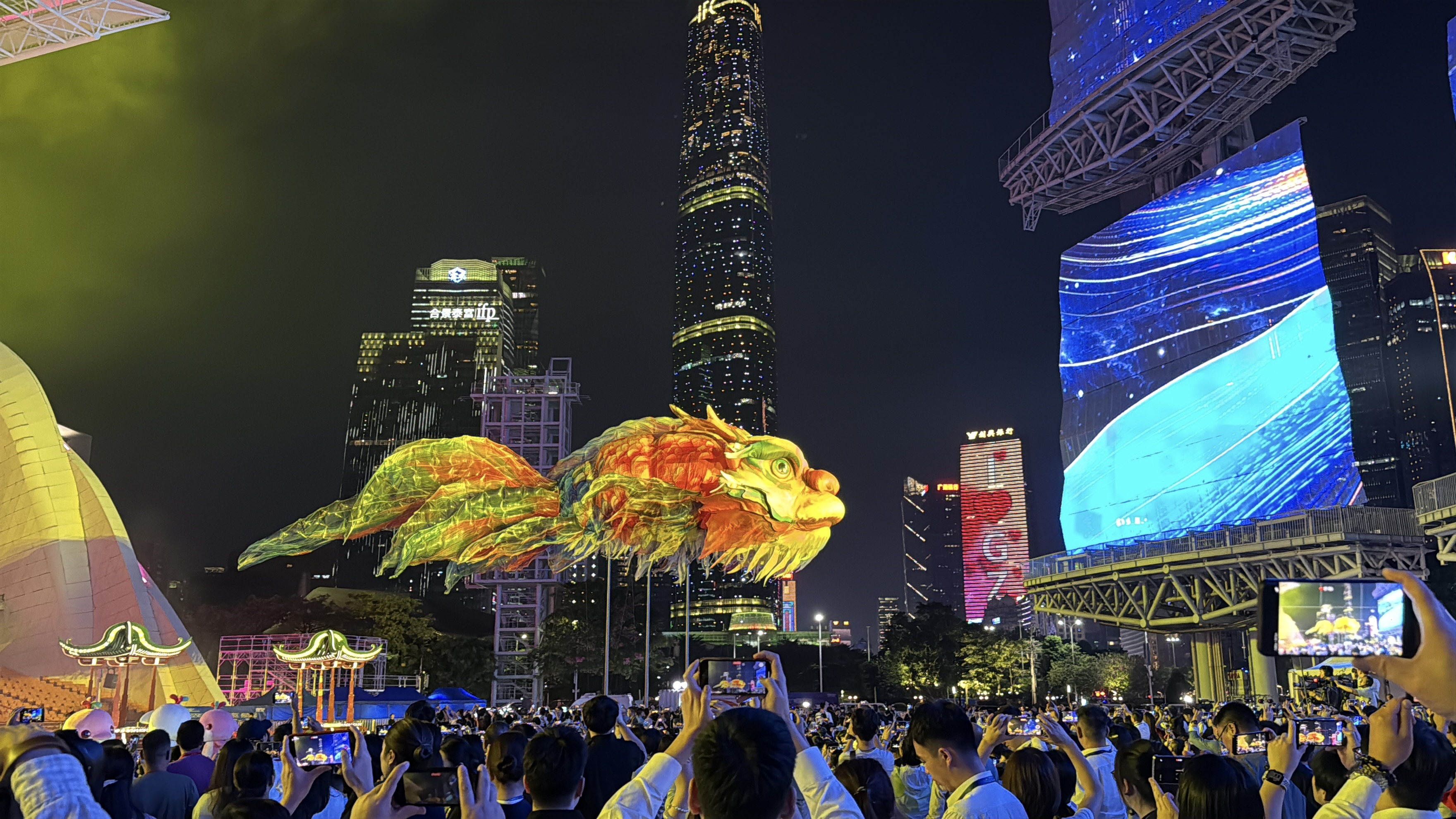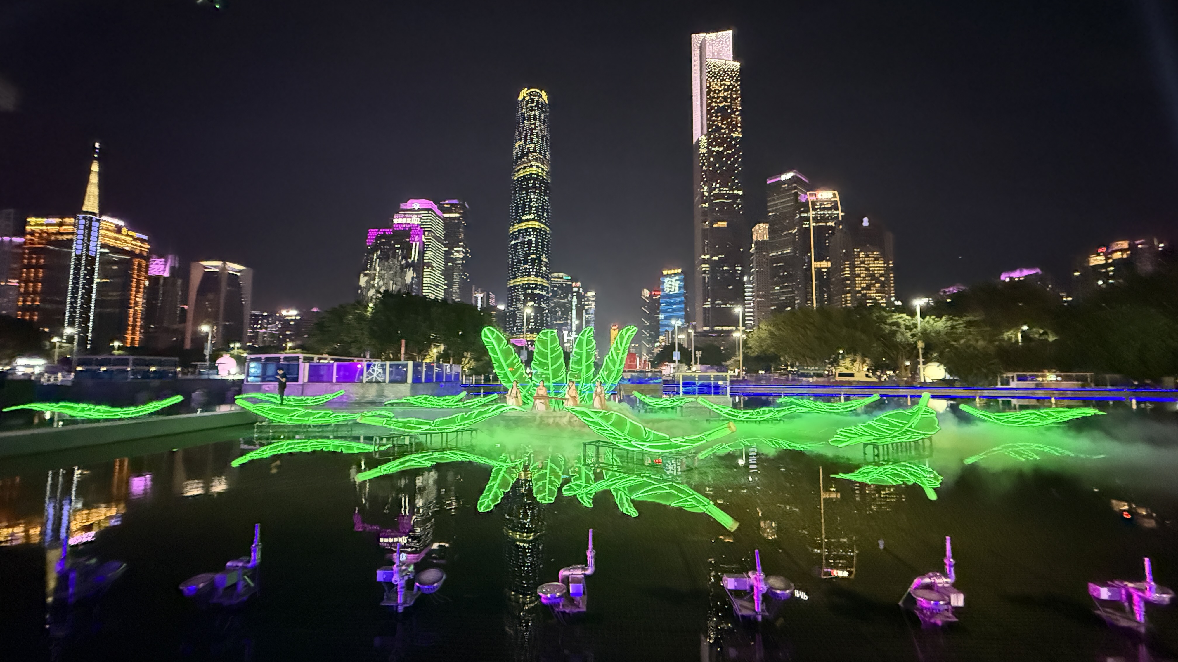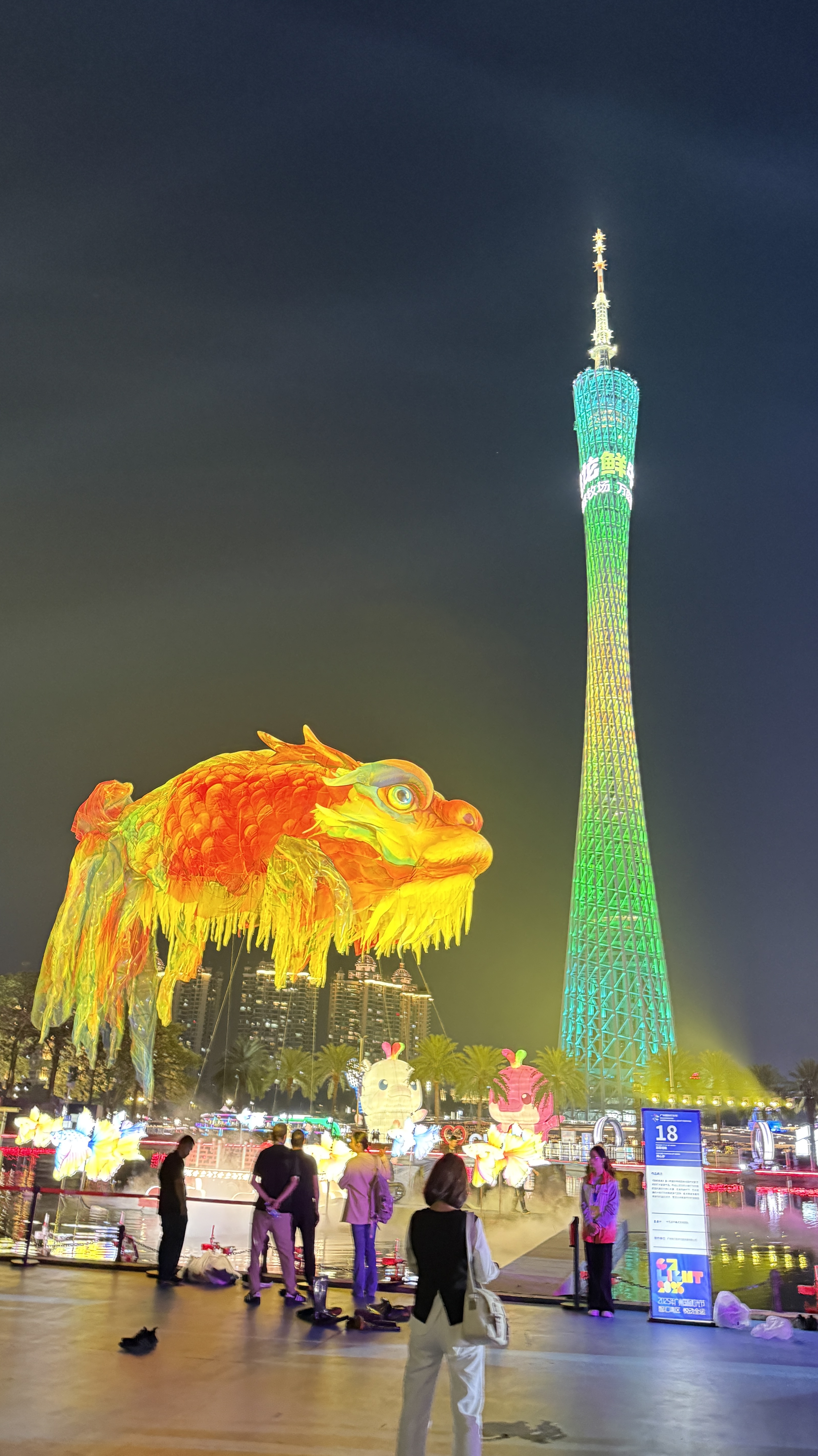 最讓人驚喜的是,十五運會開幕式上,那尾凌空遊弋的巨型鰲魚「遊」到了燈光節現場,並在水舞台上空遊走。「鰲魚」身披金光,倒映在水中如夢如幻,與江對岸的廣州塔互相映襯,讓現場觀眾紛紛驚呼「太美了。」廣州市民梁婷婷說,在電視上看開幕式後就一直對「鰲魚」心心念念,沒想到現場觀看感覺更加震撼、更加夢幻,「希望有一個固定展示的地方,讓更多人感受嶺南文化的美。」暫時還沒預約到燈光節門票、只能在遠處眺望的茂名遊客林小姐更是許願說,希望明年春節來一次「鰲魚」廣東大巡遊。